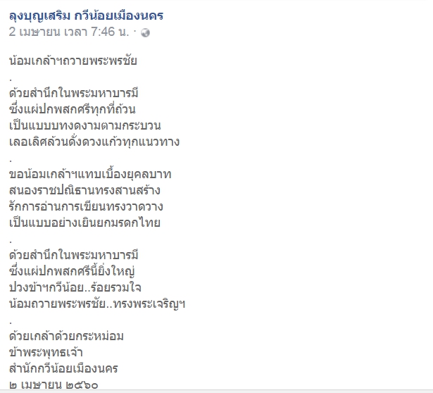 นี้ที่ขอมาจากเพื่อน ลุงบุญเสริม สำนักกวีน้อยเมืองนคร ตะกี้นี้