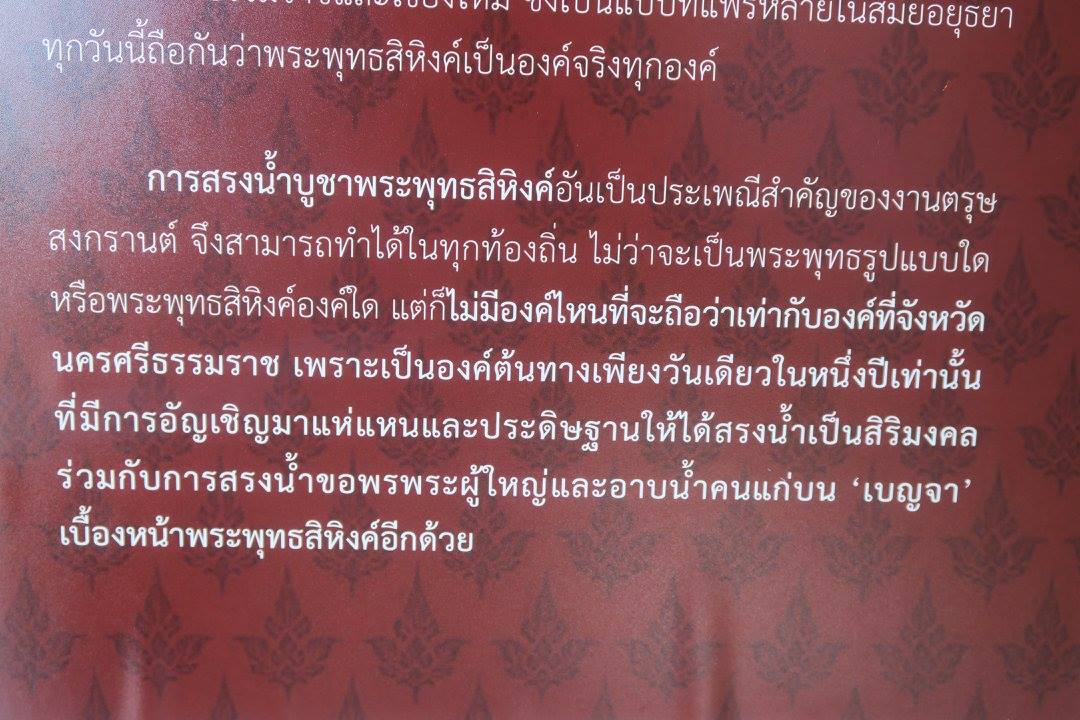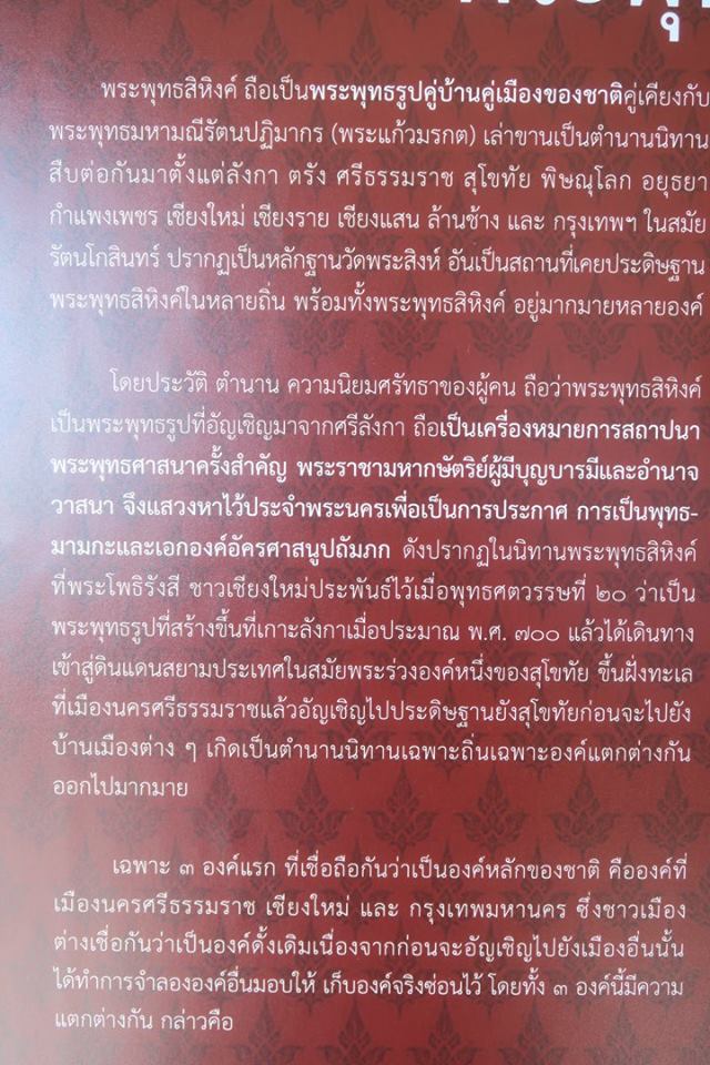 นี้คือที่พวกเราที่สวนโมกข์กรุงเทพทำไว้และอัญเชิญพระพุทธสิหิงค์จำลอง องค์ที่พระเจ้าอยู่หัวภูมิพลฯ ทรงเสด็จฯ เททองที่วัดพระธาตุจากเบ้าหล่อที่กรมศิลปากรอนุญาตพิเศษให้ทำจากองค์จริง อัญเชิญจากเมืองนคร มากรุงเทพตั้งแต่ฉลองพุทธชยันตี ๒๖๐๐ ปีแห่งการตรัสรู้ และมติชน-ข่าวสด ขอเชฺิญไปให้ผู้คนได้สักการะตลอดมาทุก ๆ ปี
