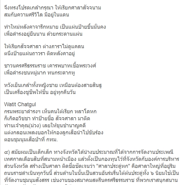 คนที่รู้เรื่องนี้ดีสุดตอนนี้น่าจะโกแอ๊ดนะครับ เพราะจำได้ว่าโกแอ๊ดเคยเล่าผมว่าได้เล่าให้นายกสมนึกฟังถึงศาลาเดิมสมัยเด็ก ๆ จนนายกบอกว่าเข้าที และโกแอ๊ดเป็นคนร่างภาพศาลาหลังนี้ให้เทศบาลนครสร้างขึ้น ทั้งที่แต่เดิมนั้น เท่าที่ผมจำความได้ศาลานี้ไม่มีมาแต่ก่อน มีแต่ศาลาคอนกรีตเสริมเหล็กด้านหน้าศาลาเดียว อ่านข่าวที่แปะแล้ว สนุกมากเมืองนครบ้านผม ที่เป็นของปกครอง ศาลาหน้าของ อบจ. ศาลานี้เทศบาลสร้างใส่ แล้วใครไม่ธุระ อยู่ข้างจวนผู้ว่าฯ หน้าบ้านรองผู้ว่าฯ ริมรั้ว รร.กัลยาณี ที่ว่ามีสระล้างดาบศรีปราชญ์
