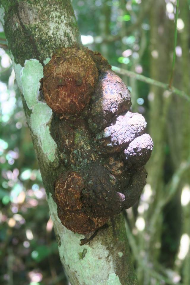 ถึงตรงนี้ มีหนุ่มน้อยคนหนึ่ง อยู่ ม.๖ ที่เวียงสระ และขอตามมาด้วย ทราบว่ารักพืชมาก อยากมาดูเพื่อประกอบการตัดสินใจว่าอนาคตจะเรียนเพื่อไปเป็นอะไรดี ถามผมว่า "ที่เป็นปุ่มอย่างนั้น มันอะไรครับ" "ก็เป็นรอยแผลเป็นที่เขาพยายามรักษาตัวเองจนปูดโปนอย่างที่บางคนเป็นปุ่มใหญ่บนหัวไหล่ หลังปลูกฝีไง, คล้าย ๆ กับที่คนชอบเสาะแสวงหาปุ่มมะค่าในป่าด้วย"