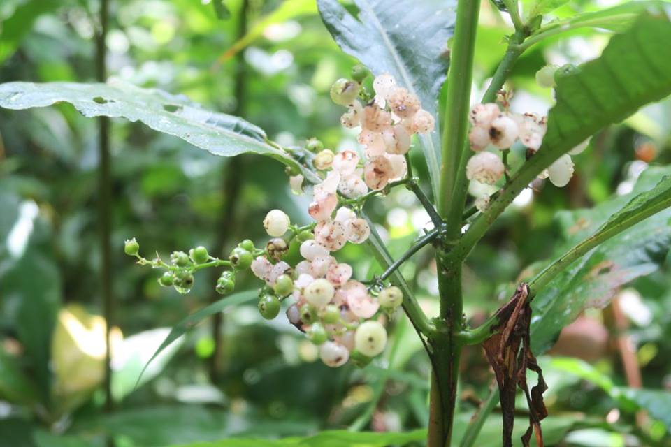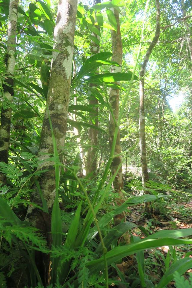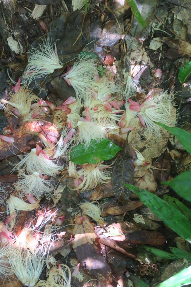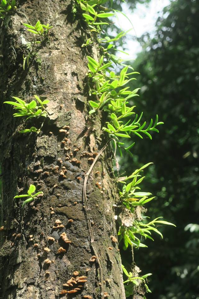 แถบนี้ที่เป็นสวน พบไม้น้อย ๆ ที่ใต้โคนกำลังให้ดอกออกผล ม่วง ขาว เหลือง เคยค้นจนรู้แต่ลืมชื่อหมดแล้ว แปลกตากับ "กอสามร้อยยอด" อีกพืชดึกดำบรรพ์ที่มักเจอในป่าพรุบนที่ราบ แล้วทำไมมาเจอได้บนนี้ ? เช่นกันกับกล้วยไม้กลุ่ม Epiphyte ที่พบเห็นน้อยมากในป่านี้ ไม่รู้ว่าหายไปไหนหมด ? ในขณะที่มะไฟลิงอ่อน ๆ นั้น เปรี้ยวหอมอร่อยนัก