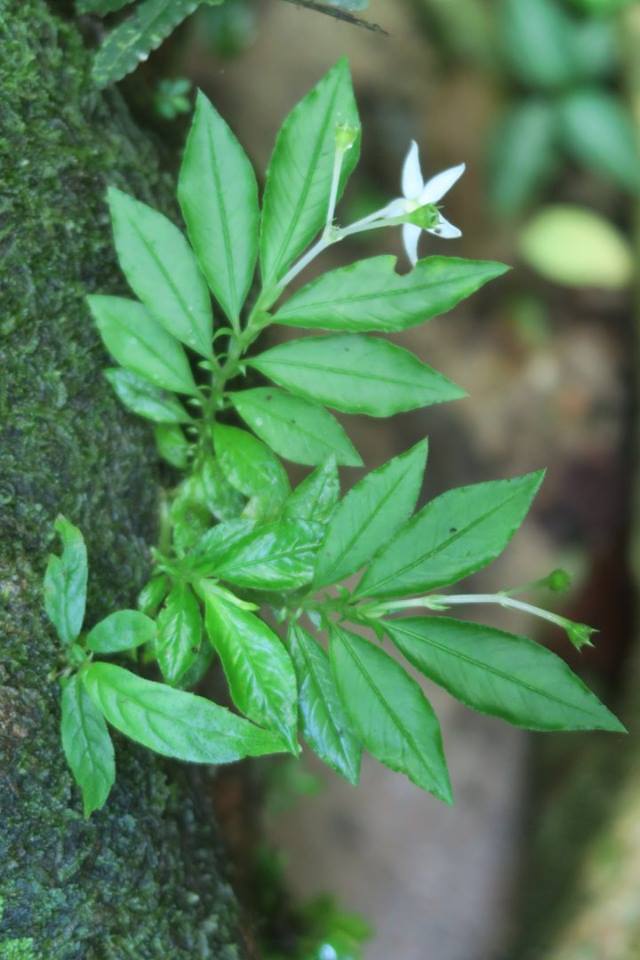 สารพัดสายพันธุ์ จำได้ว่าตอนไปไต่คินาบาลูบนเกาะบอร์เนียว เขาบอกว่าเป็นพืชถิ่นแถบหิมาลัย-มาลายันที่หลากหลายมาก ใช้ชื่อวิทยาศาสตร์ว่า Melanostomata มีการศึกษาค้นคว้ามากในเมืองนอกว่าอาจจะมีอะไรวิเศษในนั้น แต่บ้านเราก็รู้จักกันแค่ว่า "ลูกกินแล้วปากดำแต่หรอย" กอแรกที่เจอนี้เป็นพันธุ์เลื้อย ดอกขาวน้อย ๆ ใต้ก้านเฟิร์นสวยดี