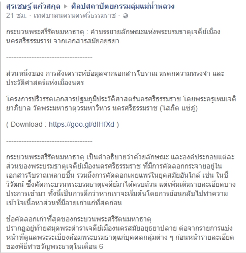 กระบวนพระศรีรัตนมหาธาตุ : คำบรรยายลักษณะแห่งพระบรมธาตุเจดีย์เมืองนครศรีธรรมราช จากเอกสารสมัยอยุธยา