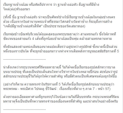 ด้วยรายละเอียดมหาศาลที่ถูกบรรจุไว้ในข้อความไม่กี่สิบบรรทัด กระบวนพระศรีรัตนมหาธาตุจึงเป็นบันทึกความทรงจำของเมืองนครที่สำคัญ และน่าสนใจอย่างยิ่งครับ