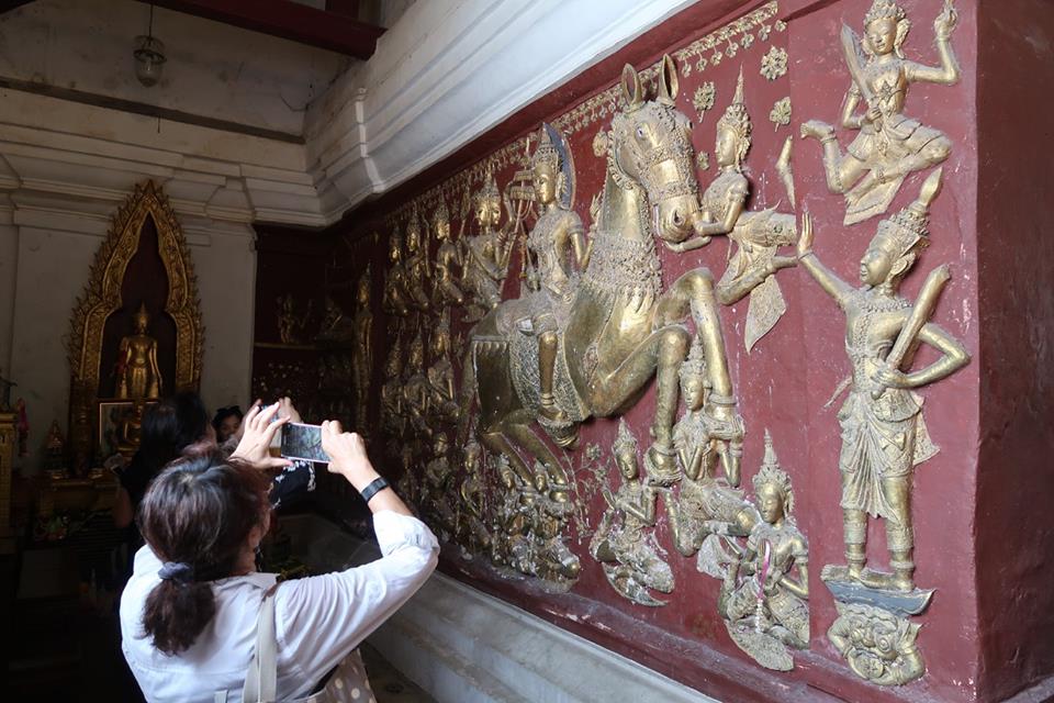 สาว ๆ สวดมนต์ไหว้พระสิหิงค์ในหอกันงดงามมากครับ.