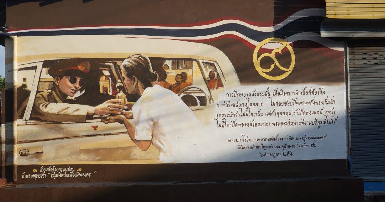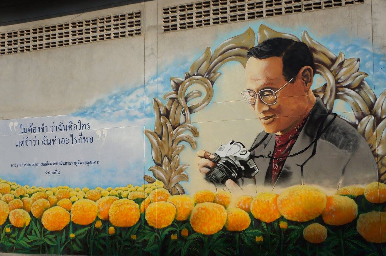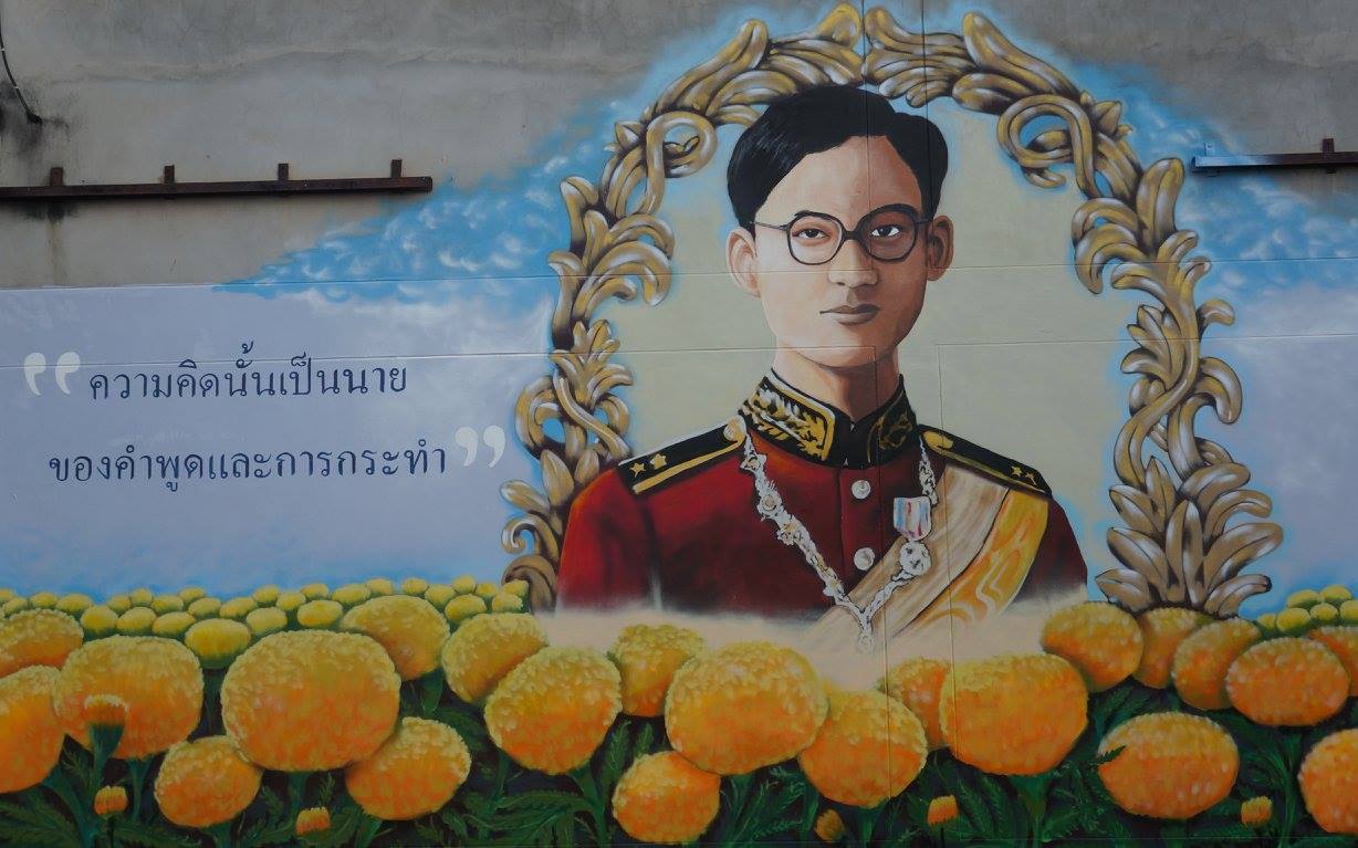 แล้วร่วมมือกันวาดภาพพระองค์ท่านบนพื้นผนัง