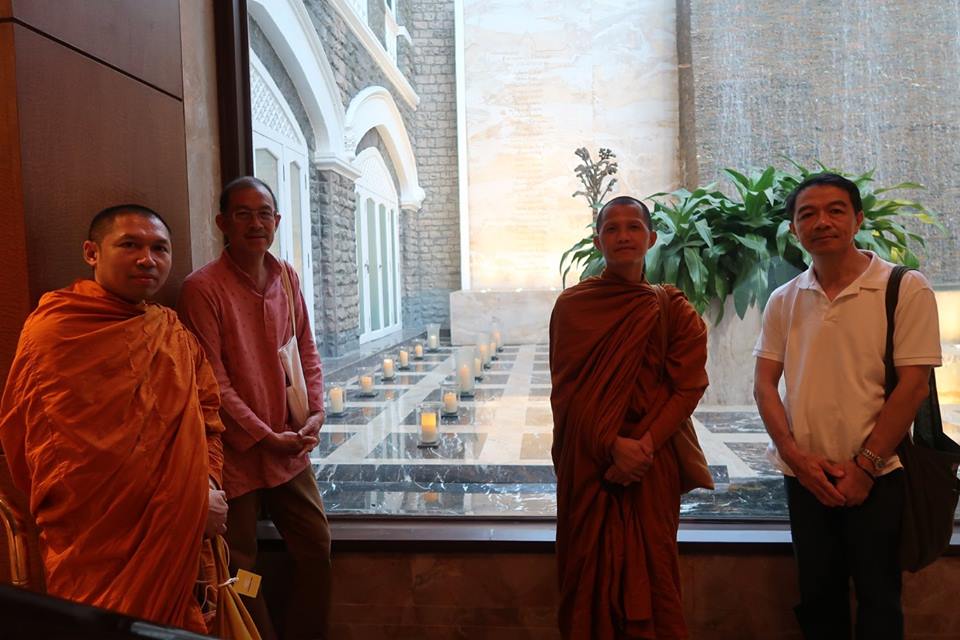 ๔) สุดท้ายส่งให้ซื้อของที่ย่านโคลาบา ตรงปลายเกาะใต้สุดของ ๗ เกาะแห่งมุมไบ แต่คนมากและไม่น่าเหมาะกับพระ ผมก็เลยพาท่านเลี่ยงไปเดินริมทะเล เจอป้าย สุโขทัย ไทยสปา ติดหรา โฆษณาจ๋าอยู่ แล้วเลี้ยวเข้าไปร่วมแผ่เมตตาแก่ผู้ละชีวิตเมื่อ ๑๐ ปีที่แล้ว ในทัชมุมไบ พอจะถวายปานะในนั้น คนละตั้ง ๗ - ๘๐๐ รูปี พระ Siridhammapirat Yodkhun ท่านบอกว่า พอแล้วโยม ก็เลยดิ่งออกไปถ่ายรูปกับประตูอินเดีย แล้วเดินเล่นดูนี่นั่นโน่น ล้วนแพงแหลกราญ ตลับหินอ่อนฝังหินสีอันละหลายพันยันหมื่น ซ้ือได้แต่ผ้าคลุมเตียงราคาเยาว์ เหมามาผืนละ ๒๐๐๐ กว่ารูปี ก่อนแวะกินเย็นที่แอมบาสซาเดอร์ไม่ได้เรื่อง จึงได้ศุภราตรีที่มุมไบ