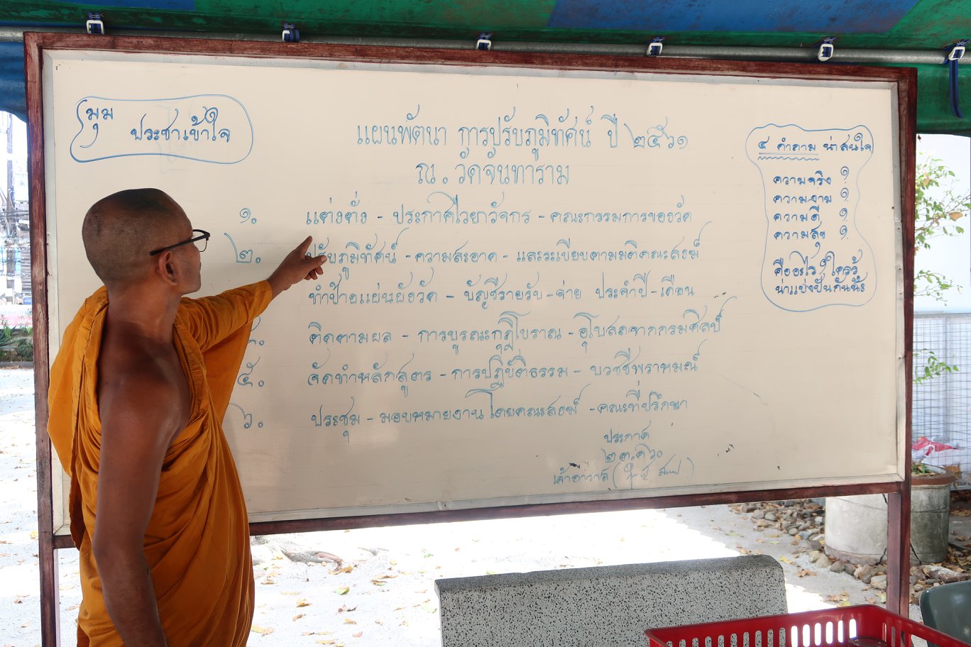 ๖) ท่านเจ้าอาวาส หารือต่อถึงแผนงานของวัด ซึ่งค่อย ๆ คืบคลายตามลำดับ สำหรับการส่งเสริมปฏิบัติธรรมนั้น ทุกคนเห็นว่าควรรอไว้ก่อน หลังจากนี้ที่ครคิดคือจะบริหารจัดการอาคารทั้ง ๒ นี้อย่างไร ได้เล่าถึง วัดบันดาลใจ และที่ประชุมสนใจ ฝากทีม วัดบันดาลใจ ส่งรายละเอียดให้วัดเพื่อพิจารณาสมัครเข้าร่วม โดยเห็นพ้องต้องกันว่าน่าจะมุ่งฟื้นฟูประเพณีทางพุทธศาสนา รวมทั้งการเป็นศูนย์ชุมชนเชิงช่างและขนมเมืองนครน่าจะเหมาะกว่า ๗) ที่ประชุมเห็นควรตั้งคณะทำงานขับเคลื่อนและมีส่วนร่วมในการบูรณะฯ ครั้งนี้ ทั้งฝ่ายสงฆ์และฆราวาส แบบร่วมด้วยช่วยกัน เป้าหมายขั้นต่ำ ให้ได้รับรางวัลอาคารอนุรักษ์สถาปัตยกรรมไทยดีเด่น ของสมาคมสถาปนิกสยาม ใครสนใจ แวะเวียนไปช่วยกันดู ชี้แนะ และร่วมด้วยช่วยกันนะครับ ขอบคุณ รัตนโกสิเนหา Rattanakosineha ที่ส่งข่าวให้ได้รับทราบ จนขับเคลื่อนต่อเป็นนี้นะครับ หากมีอะไรชี้แนะ กรุณาบอกด้วยนะครับ แม่รับทราบด้วยนะครับ