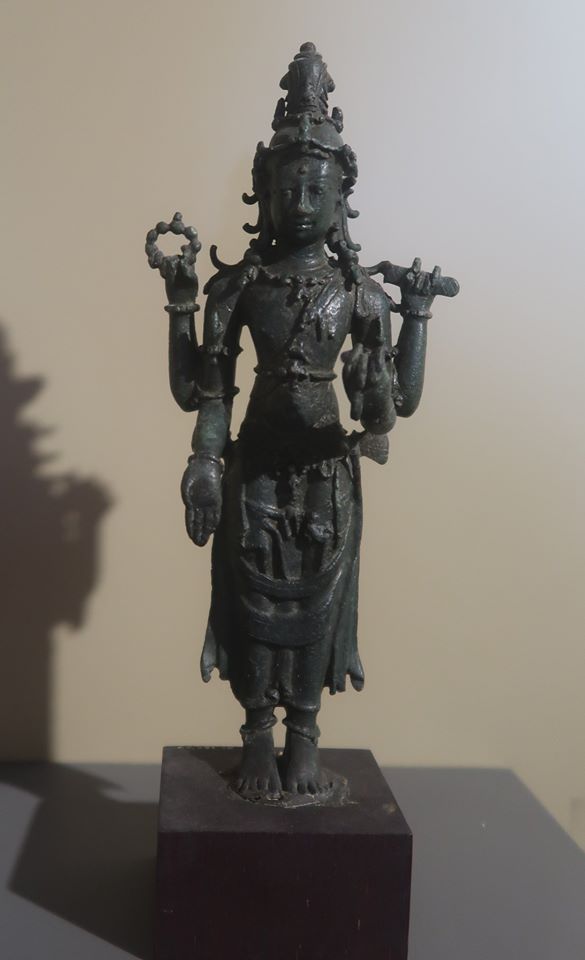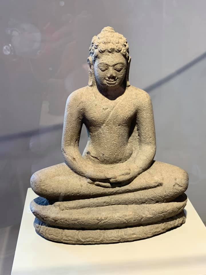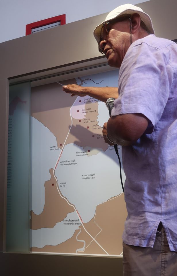 การเข้าพิพิธภัณฑ์ฯ สงขลา คราวนี้มีเวลาน้อยพวกเรากำหนดให้ดูแต่ช่วงก่อนประวัติศาสตร์จนถึงเริ่มแรกเท่านั้นโดยมีภัณฑารักษ์จากพิพิธภัณฑ์มาช่วยนำร่องแล้วท่าน อ.ศรีศักร กับ ผม คอยเสริมเติมตามประเด็นเน้นเพื่อการนี้ที่หน้าห้องแรก เขาทำเรื่องนโยบายการค้าเสรีที่สร้างความมั่งคั่งให้สงขลาตั้งแต่สมัยอยุธยาที่หัวเขาแดงแต่ย้อนไปกว่านั้นที่ในห้องก่อนปนะวัติศาสตร์เริ่มมาแต่สมัยหินและโลหะ พบกลองมโหระทึกที่จะนะ ลูกปัดที่สะทิ้งพระ ซึ่งผมขอเติมนิดหน่อยแล้วส่งให้ท่าน อ.ศรีสักร กับ คุณภัณฑารักษ์ พาเข้าห้องศรีวิชัย ซึ่งเต็มไปด้วยรูปพระอวโลกิเตศวรสำริดกับพระนารายณ์และศิวลึงค์แล้วก็พระพุทธรูปอย่างที่พบที่ไชยา ท่าน อ.บอกว่าอย่างจามในห้องน้อยที่จำลองเตาปะโอไว้พร้อมกับภาพจากหนังสือกัลปนาวัดพะโคะที่เคยเรียกว่าแผนที่เมืองนครศีธรรมราช แต่ทั้งหมดนั้นอยู่บนคาบสมุทรสทิ้งพระแทบทั้งสิ้น
