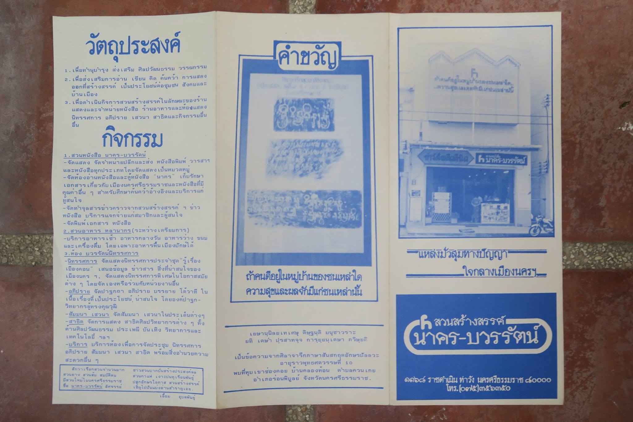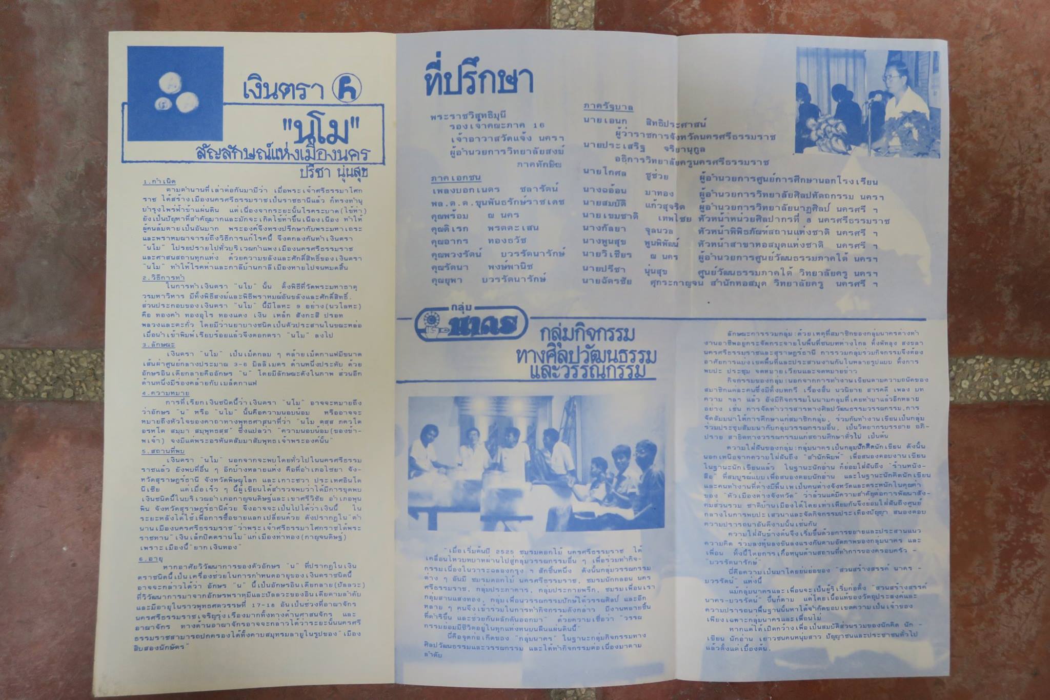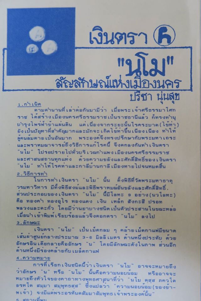 โดยตัว "นอโม" นั้น เราขอให้ท่านอาจารย์ปรีชา นุ่นสุข นักโบราณคดีคนสำคัญของเมืองนครในยุคนั้น ช่วยเรียบเรียงให้อย่างกระชับ จึงขอไม่ขยายความอะไร นอกเหนือจากรายละเอียดที่พิมพ์ในแผ่นพับของสวนสร้างสรรค์ นาคร-บวรรัตน์ ที่ผลิตเผยแพร่เมื่อปี ๒๕๒๘ โน้น
