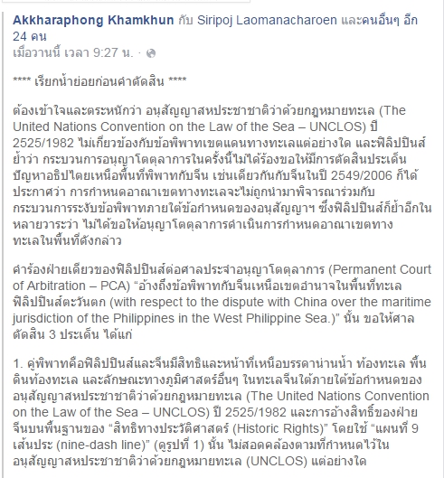 ถ้าไม่ผิด วันนี้ศาลโลกจะวินิจฉัยข้อพิพาทนี้ ระหว่างจีนกับฟิลิปปินส์
