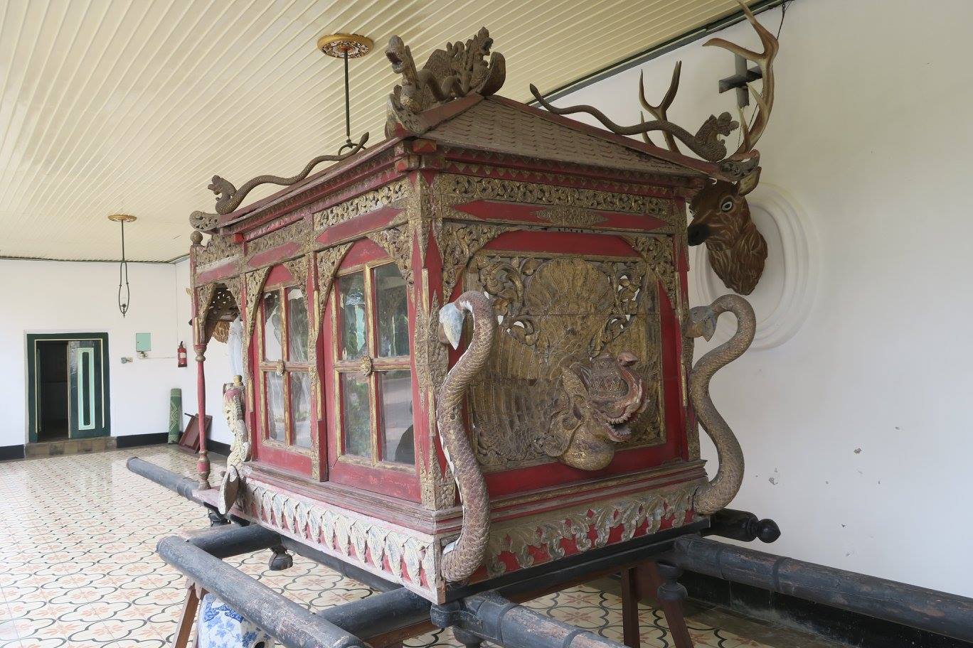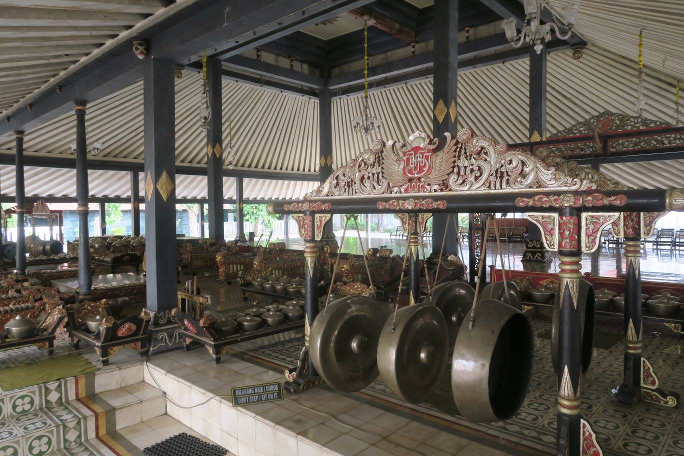การเข้าถึง เขามีที่จอดรถเตรียมไว้ แล้วใช้รถชัตเติ้ลเล็กลำเลียงส่งถึงประตูวังที่มีนายทวารนุ่งโสร่งเหน็บกริชดูดีมาก ๆ ผมเจอต้นชมพู่น้ำดอกไม้ตัวจริงที่กัดแล้วหอมกรุ่นอยู่ในปาก ทุกวันนี้หาได้ไม่ง่ายนัก จากนั้นจึงถึงโรงรอที่เขาเอาเครื่องดนตรีวงฆ้องชุดใหญ่มาจัดวางไว้ มเล่นเป็นเวลา ก่อนเข้าประตูชั้นใน มีโรงยามทำไว้ดูดีทีเดียว