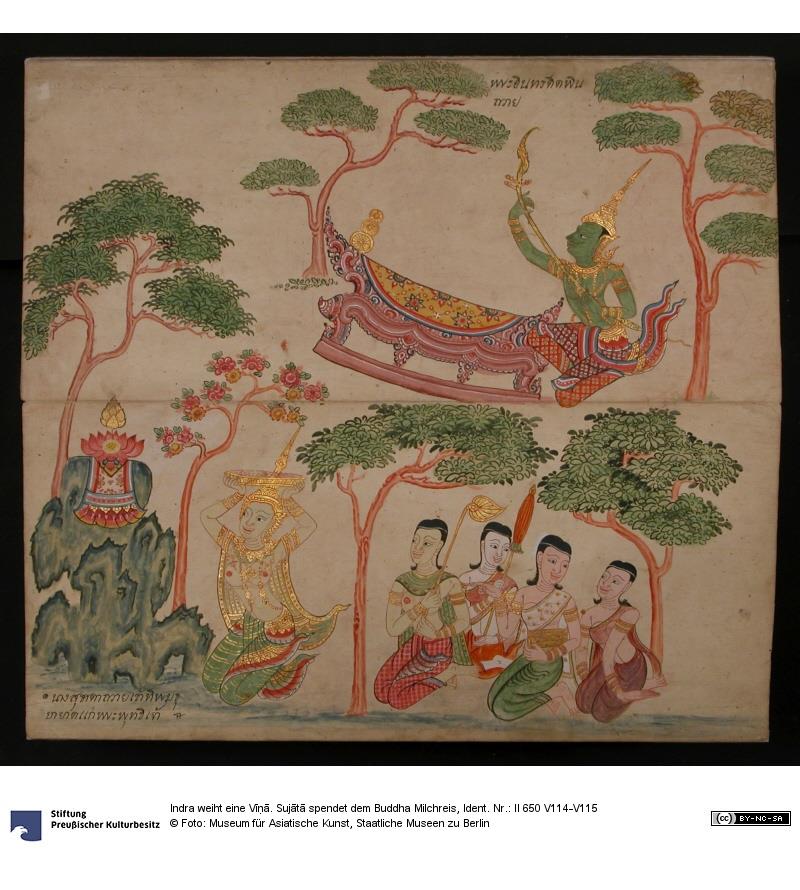 พระอินทร์ดีดพิณ นางสุชาดาถวายข้าวทิพย์