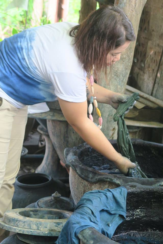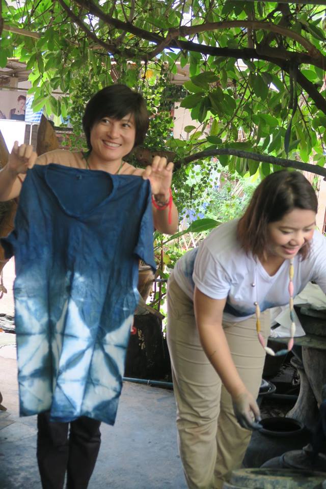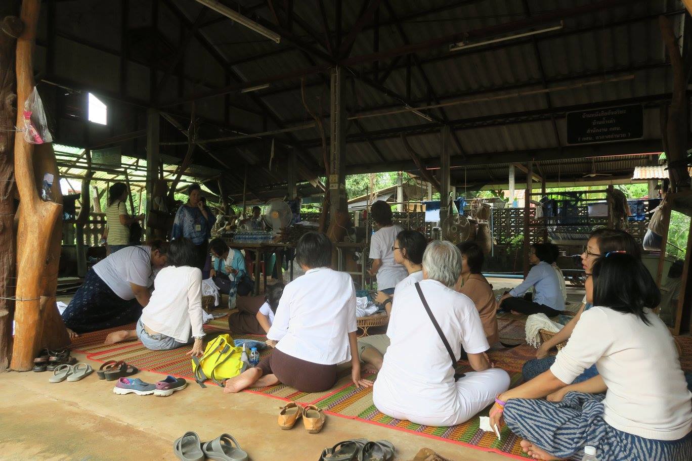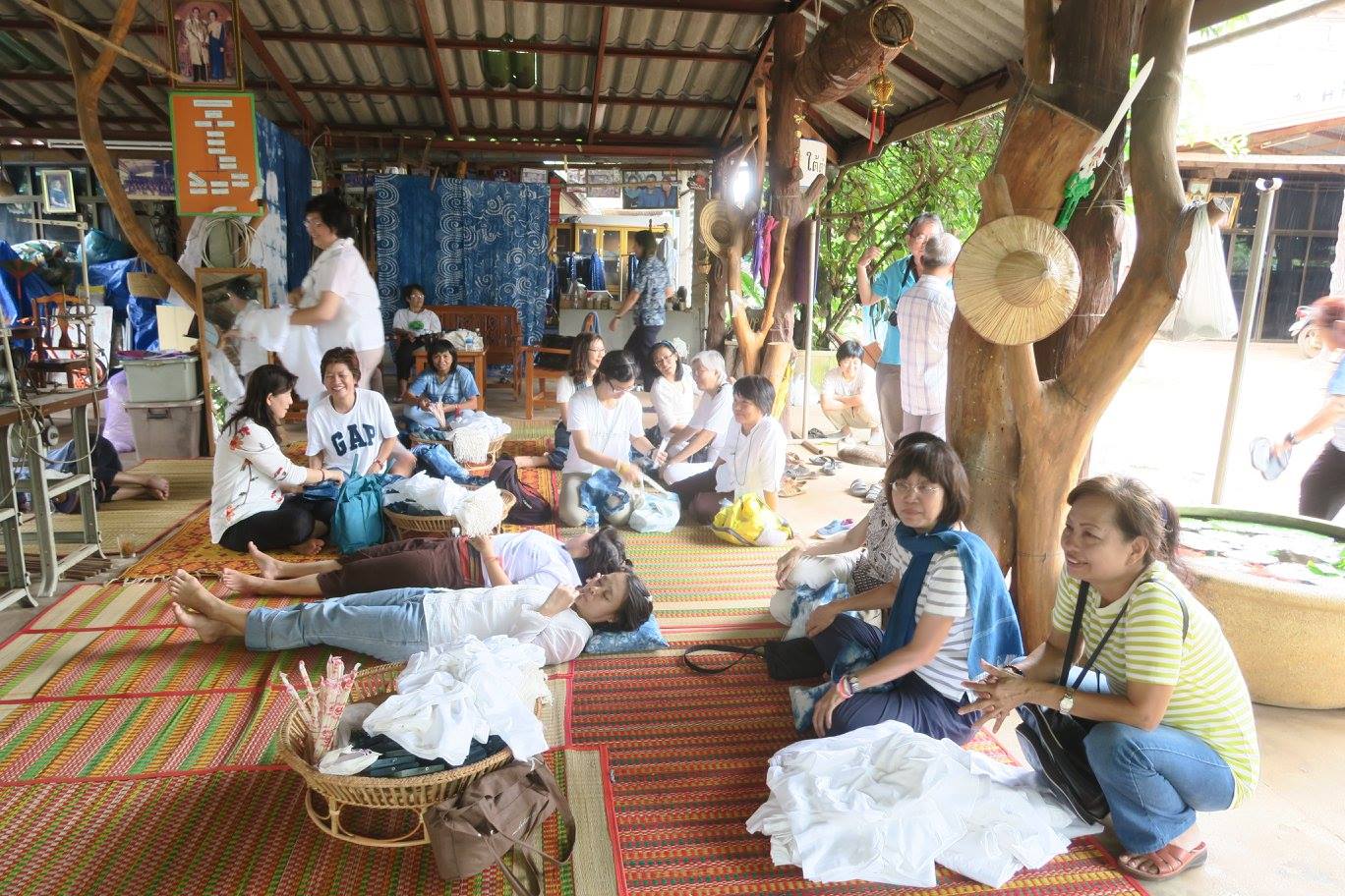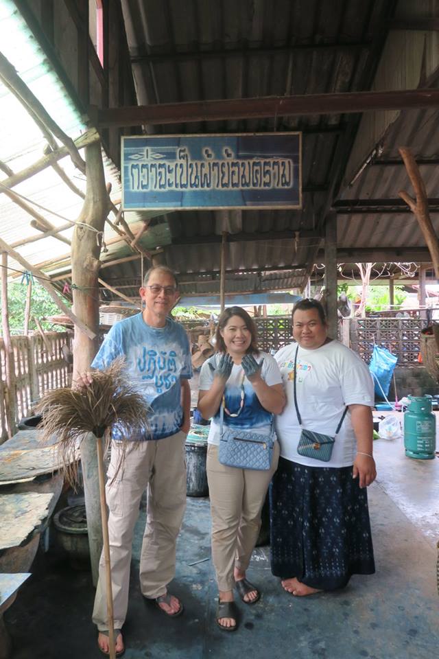 เมื่อคราวไปปฏิบัติบูชาที่สกลนครรอบล่า ก่อนเข้าวัดไตรสิกขาฯ คณะได้ไปแวะที่บ้านถ้ำเต่าที่เป็นอีกฐานสำคัญของกลุ่มแม่บ้านผลิตผ้าย้อมครามที่มีสมาชิกหลายร้อยคน โดยวันนั้น จัดให้คณะได้สร้างลายผ้าเองด้วยวิธีมัดย้อม แล้วย้อมเสร็จเอากลับไปใส่ได้เลย