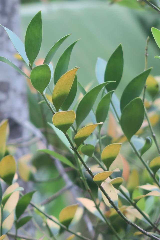 ใบย้อยคล้ายรูปหอกแคบๆปลายแหลม เกิดเวียนรอบลำต้น