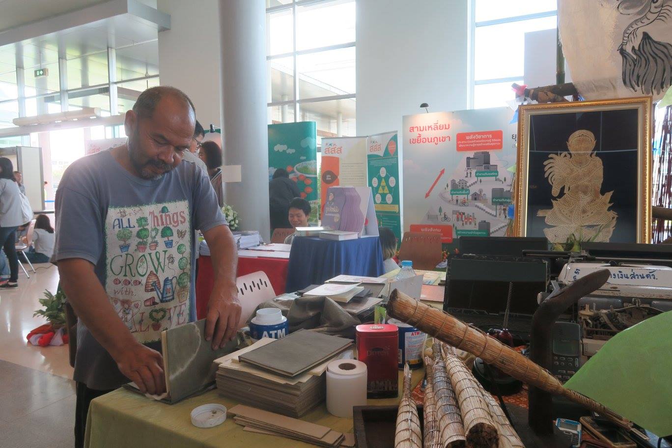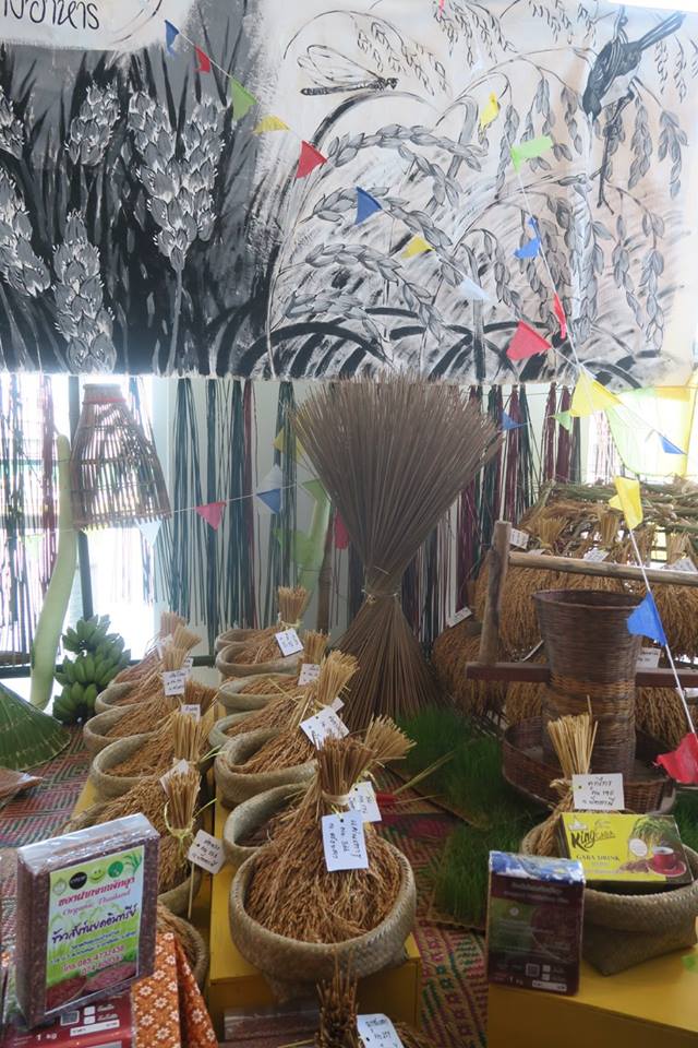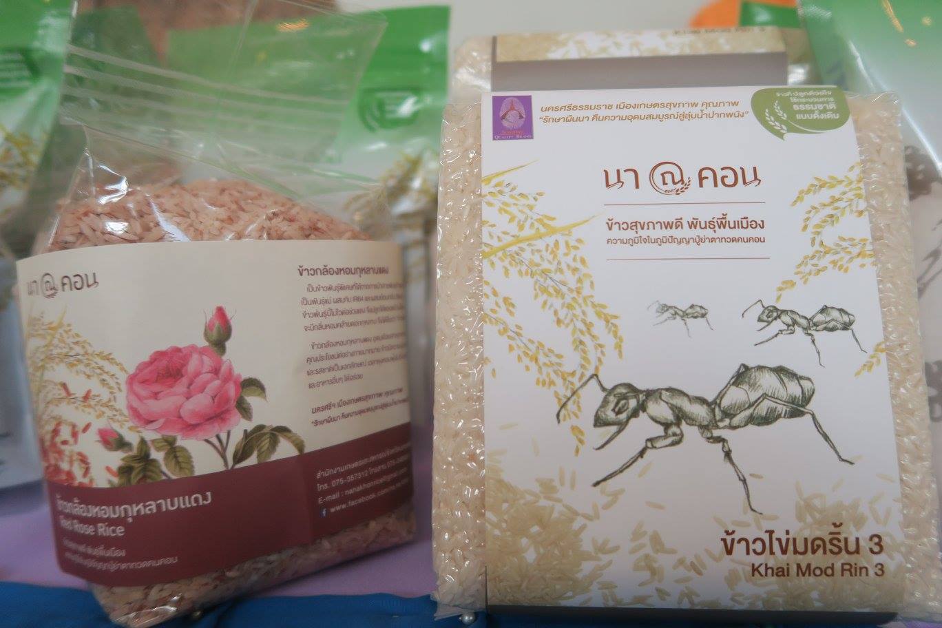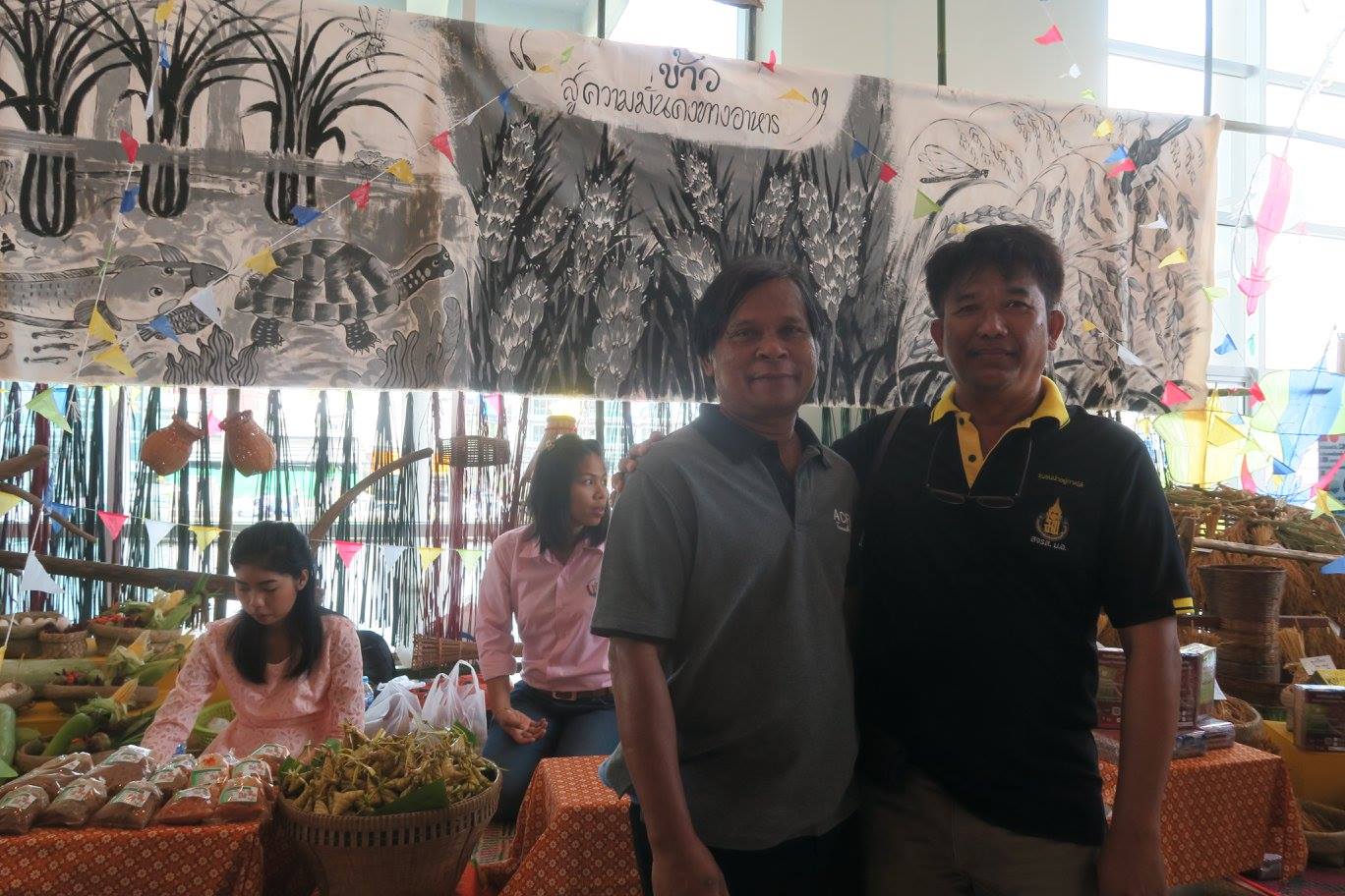 เดินเดี๋ยวเดียว “เสณีย์ จ่าวิสูตรจากพัทลุง” ที่ร่วมขับเครือข่าย อสม.ภาคใต้ตอนดับบ้านดับเมืองเข้ามาบอกว่ากำลังมุ่งประสานคนพัทลุงทำเรื่องข้าวและเกษตรอินทรีย์ ถามได้ความว่าตอนนี้ที่พัทลุงกำลังขับเคลื่อนยุทธศาสตร์ข้าวอินทรีย์เป็นขบวนใหญ่ เฉพาะพันธุ์ข้าวพื้นบ้านภาคใต้มีถึง ๑,๐๐๐ สายพันธุ์ เป็นของพัทลุงเกือบครึ่ง เฉพาะในงาน ตามดูพันธุ์จากเมืองนครได้เพียง ๒ ชื่อ ช่อปลีขาว กับ บี้หล้า เบอร์ ๑๑๗ กับ ๑๑๘ เท่านั้นเอง แล้วจะค้นคว้าเผื่อพัฒนาต่อให้สมกับที่บ้านเราก็เป็นหนึ่งในวงการข้าวเมืองนครที่เคยให้กองทัพไทยใต้ยืมใช้ในยามสงครามเนื่องจากตอนนั้นมีหลายโรงสีและกองทัพไทยไม่มีเงินจ่ายแต่ทหารต้องไม่ขาดข้าวกิน ส่วน “สาคูควนขนุน” จากเครือข่ายเกษตรอินทรีย์พัทลุงที่เขาเอามาขูดสาธิตจนออกมาเป็นแป้งเอาไปแช่น้ำทำหนมสาคูนั้น เต้ยเวียนมาเอาไปด้วยสองถุง เผื่อลองทำสาคูกินกันเองดูที่บ้าน