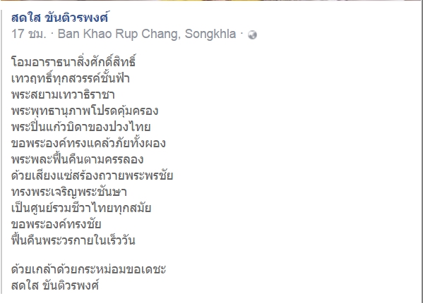 ขอพระองค์ทรงชัย ฟื้นคืนพระวรกายเร็วพลัน