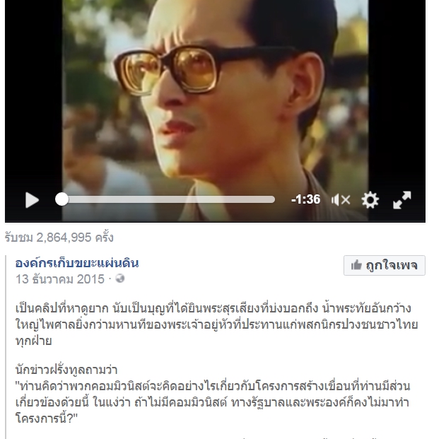 "ท่านคิดว่าพวกคอมมิวนิสต์จะคิดอย่างไรเกี่ยวกับโครงการสร้างเขื่อนที่ท่านมีส่วนเกี่ยวข้องด้วยนี้ ในแง่ว่า ถ้าไม่มีคอมมิวนิสต์ ทางรัฐบาลและพระองค์ก็คงไม่มาทำโครงการนี้?"