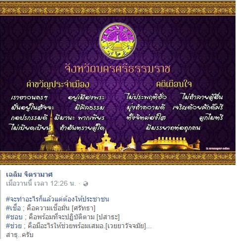 เมื่อเช้าเห็นข่าวนี้แต่อีกที่หนึ่ง...ดีใจใหญ่ เพราะว่าเมื่อหลายสิบปีก่อนตอนผมยังทำงานราชการ วันหนึ่งกลางที่ประชุมในห้องใหญ่ของศาลากลาง ท่านศึกษาธิการจังหวัดสมัยนั้น เสนอว่าน่าจะรื้อป้ายคำขวัญประจำเมืองและคติประจำใจของชาวนครที่สร้างอยู่หน้าศาลากลางออกเสีย เพราะไม่ได้เป็นอย่างนั้น ในฐานะผู้ทรงคุณวุฒิประจำคณะกรรมการคณะนั้นของจังหวัด ผมได้ท้วงว่า ไม่เห็นด้วย แต่จะเห็นด้วยหากท่านทั้งหลายจะได้ช่วยกันปลุกปล้ำให้กลับกลายมาเป็นอย่างคำขวัญและคติที่ว่า หากจะรื้อป้าย ย้ายไปน่าจะดีกว่านะครับ ขอชื่นชมการหยิบมาขับอีกครั้ง และขออนุญาตแชร์นะครับผม ทั้งนี้ผมชอบร้องเพลงนี้มาก ๆ มาตั้งแต่เด็ก จนทุกวันนี้ก็ยังร้องอยู่นะครับ "เราชาวนคร...อยู่เมืองพระมั่นอยู่ในสัจจะ........"