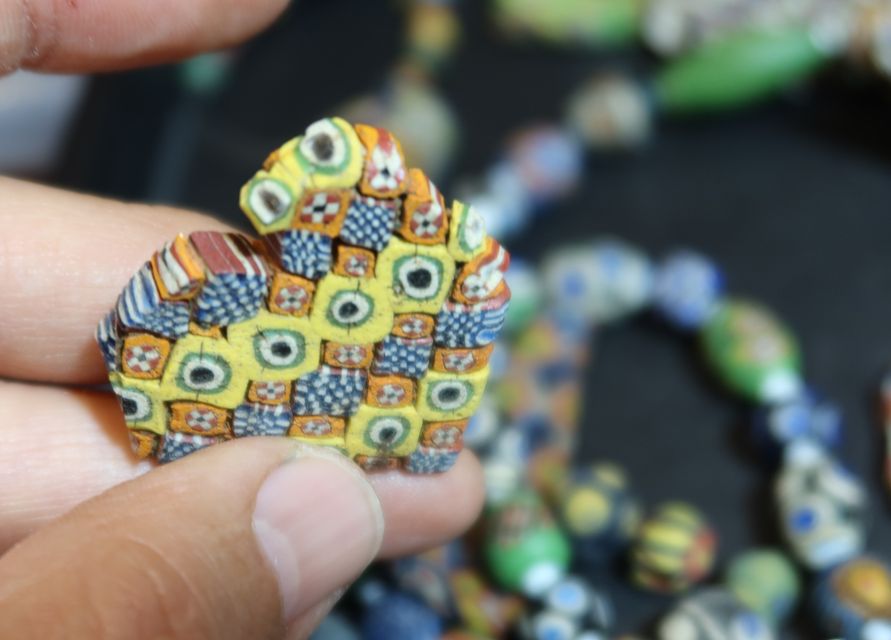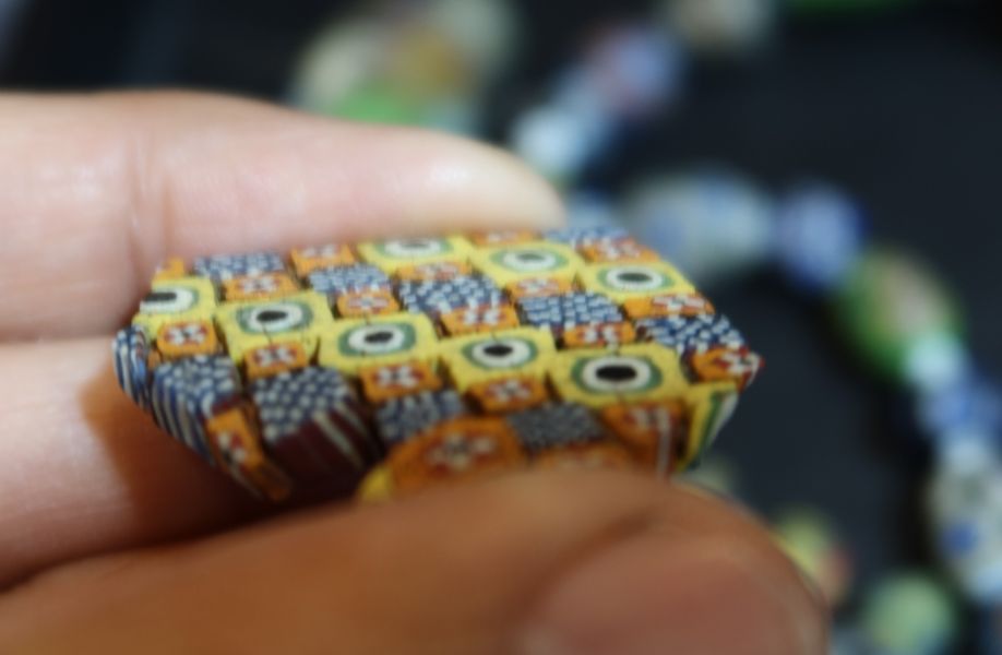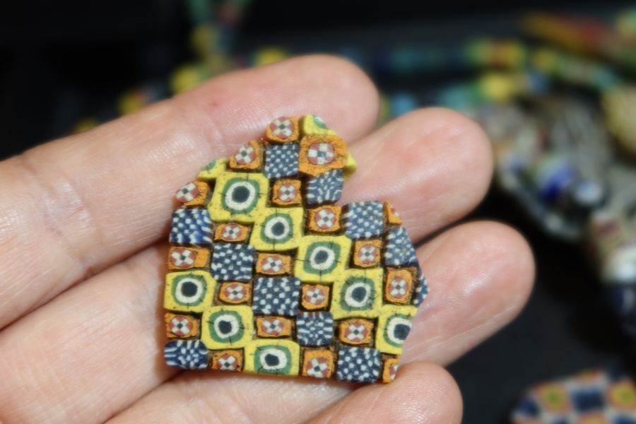 นี้มีลักษณะการนำท่อนแก้วโมเสกที่เรียงดึงยืดแล้วตัดมาต่อ ๆ กันไว้