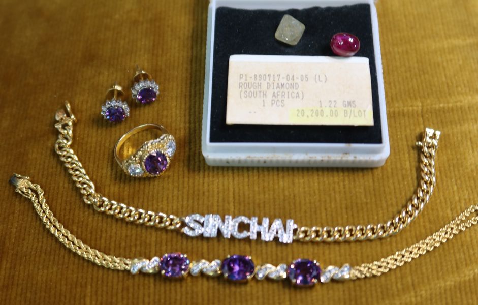 พร้อมกับสายสร้อยเพชรเรียงนาม กับพลอยดอกตะแบกอีกชุดหนึ่ง
