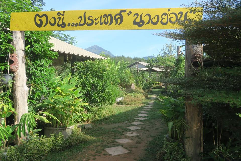 จากนั้นจึงเลียบคลองนางย่อนฝั่งใต้ออกไปหาถนนเพชรเกษมที่หลังอำเภอ ก็ผ่านค่ายพักแรม "ประเทศนางย่อน" ที่มิ้งเป็นคนประกาศจัดตั้งเมื่อยังเป็นนักเรียน แล้วเกลอเอามาเปิดเป็นค่ายพักแรมริมน้ำนางย่อนจนถึงปากคลอง "บางโร" บรรยากาศสุดยอด มีคนภูเก็ตพาลูกมาพักแรมและกำลังเล่นน้ำอยู่บนแพอย่างน่าชื่นชม