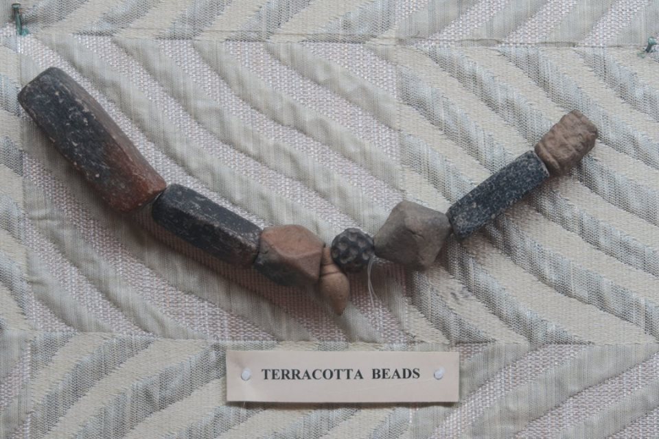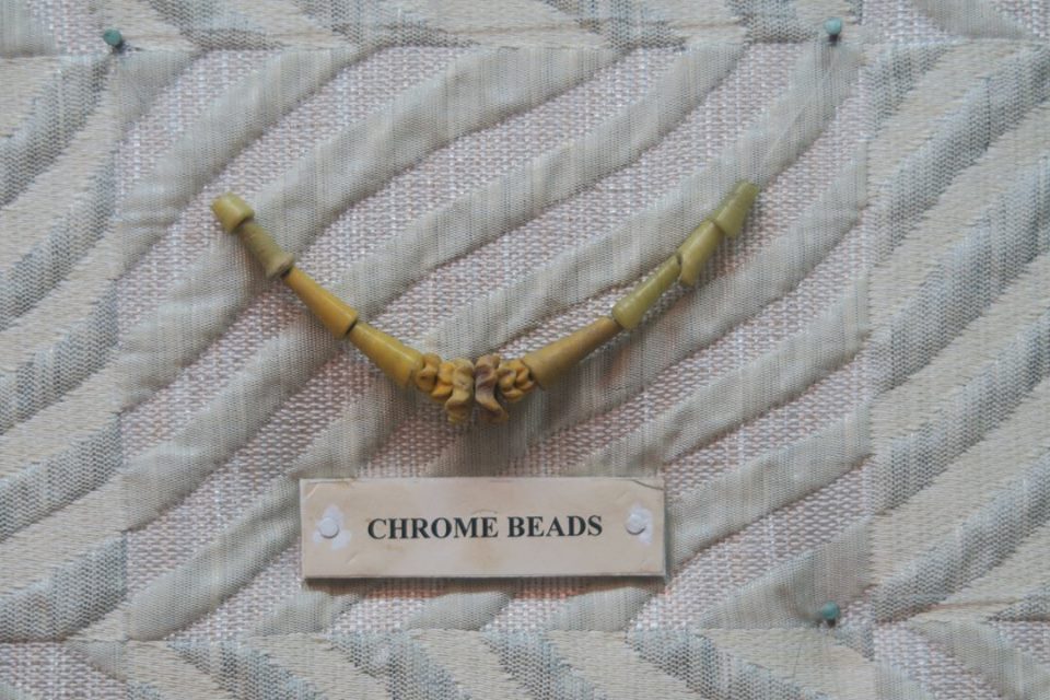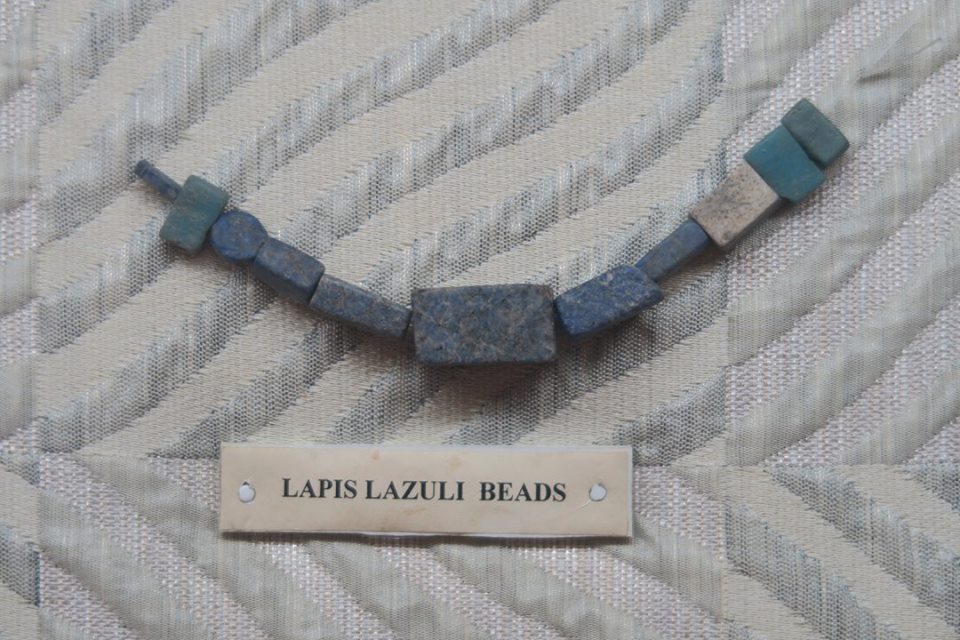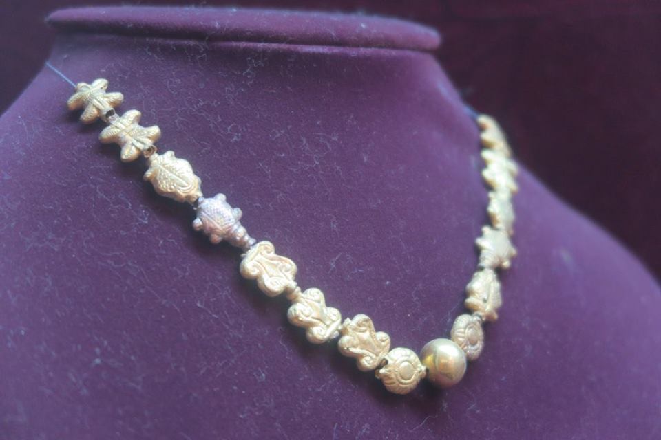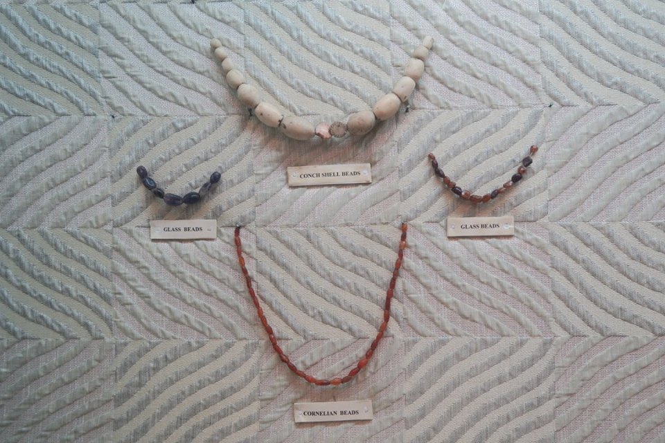 ที่เขาจัดไว้จิปาถะตั้งแต่เครื่องปั้นดินเผา โลหะ จนถึงเครื่องเคลือบและแก้ว มีอยู่สองตู้ที่เจอลูกปัดกับบรรดาเครื่องประดับทองคำ