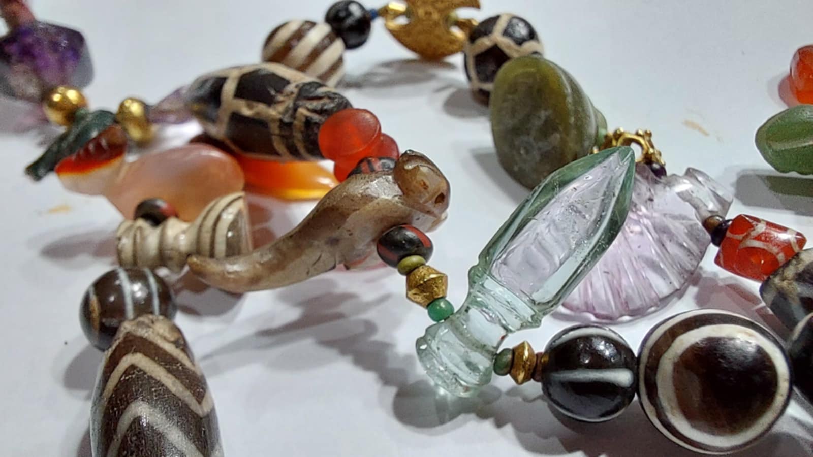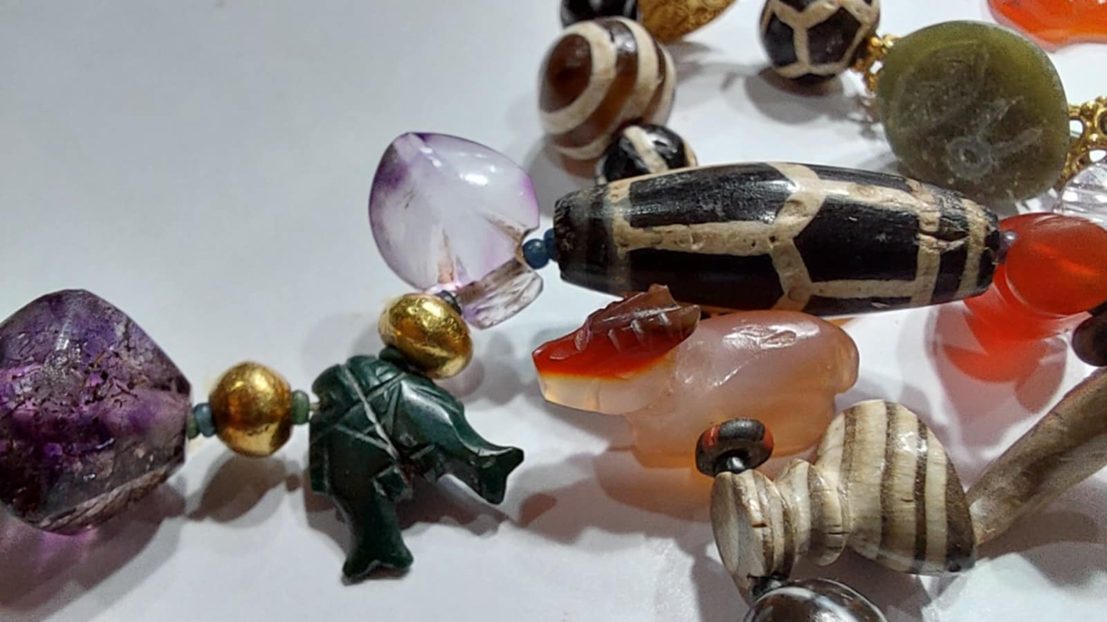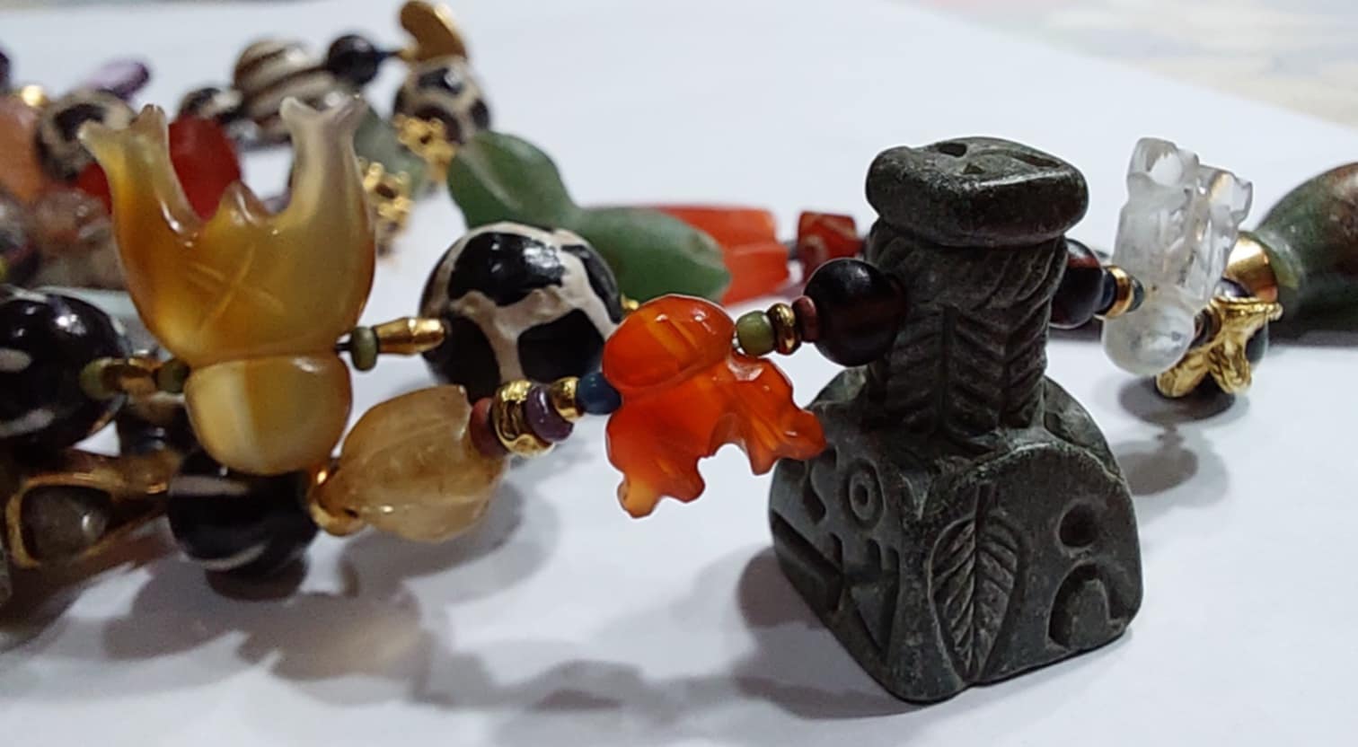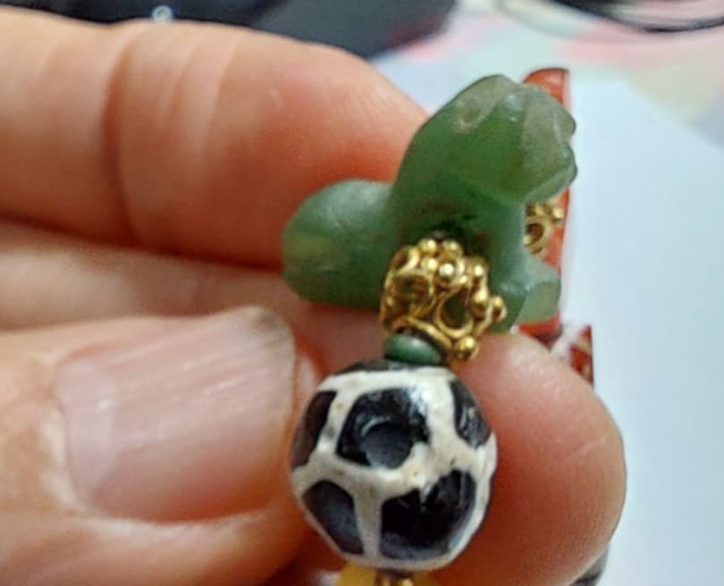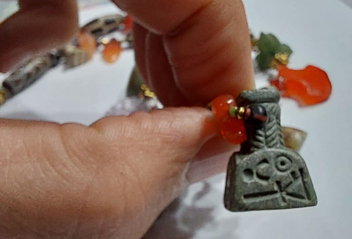 ลองไล่ดูเอาเองครับ มีจี้หินสีเขียวที่เต็มไปด้วยสัญญลักษณ์สารพัด