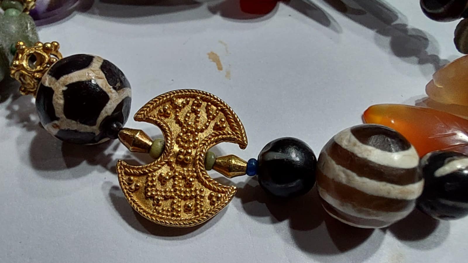 รวมทั้งขวานคู่ประดับทองเม็ดไข่ปลาเป็นรูปสวัสดิกะและตรีรัตนะ