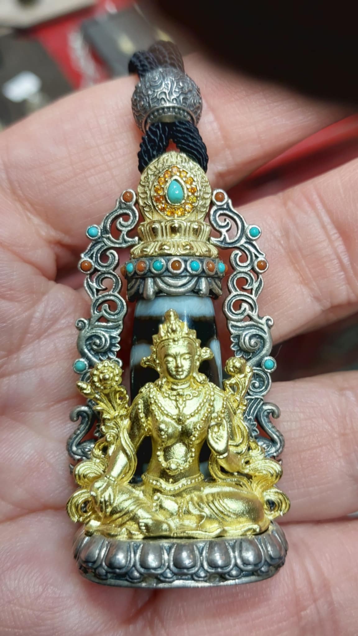 คือทำกรอบเงินประดับหินสีมีค่า พร้อมรูปเคารพอาบทอง