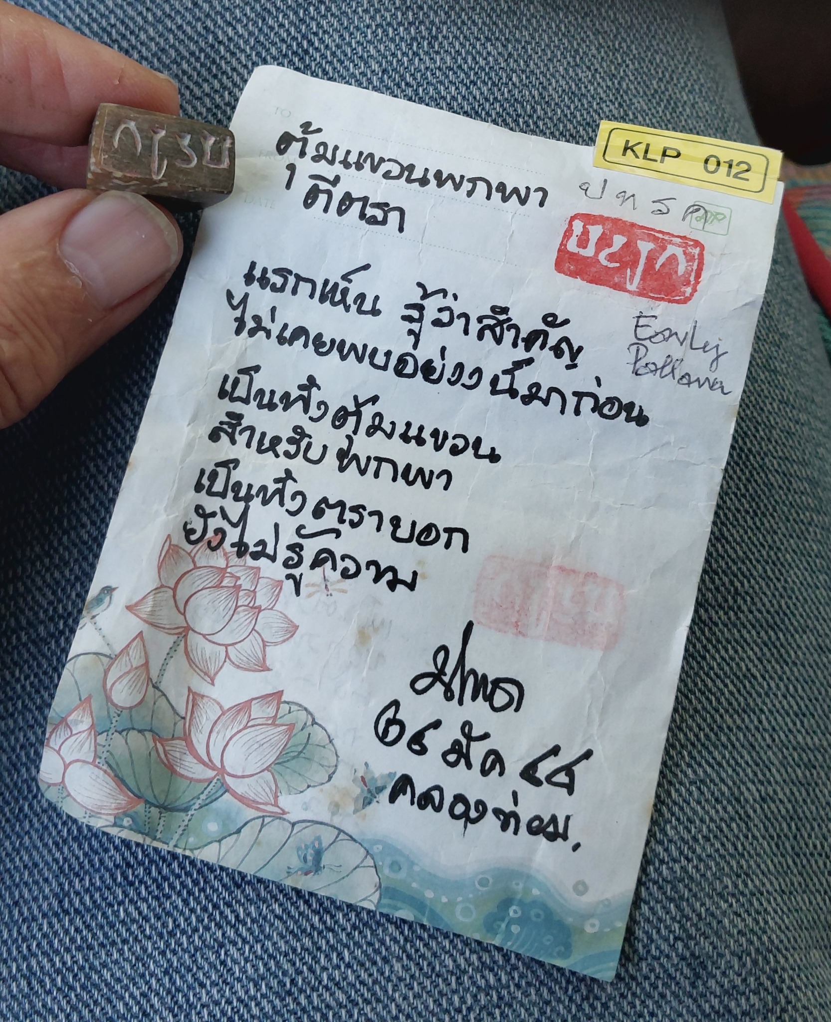 ตามบันทึกแรกรับตราประทับนี้เมื่อ ๒๔ มีนา ๔๘