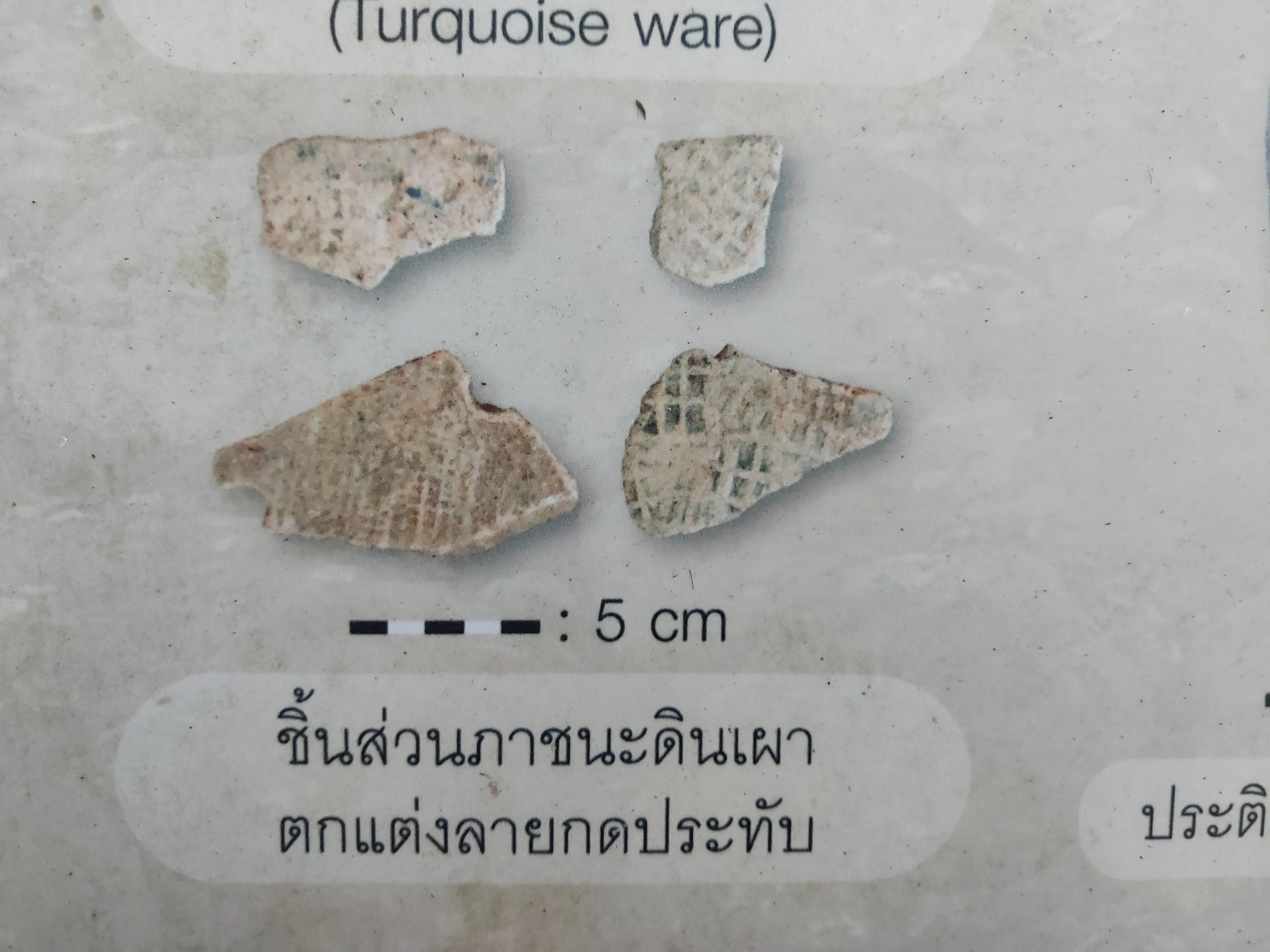 ก็เลยชี้ชวนดูรูปชิ้นส่วนเครื่องถ้วยสี่ชิ้นบนนิทรรศการแสดงนี้