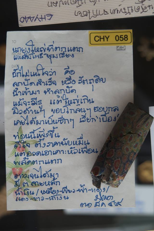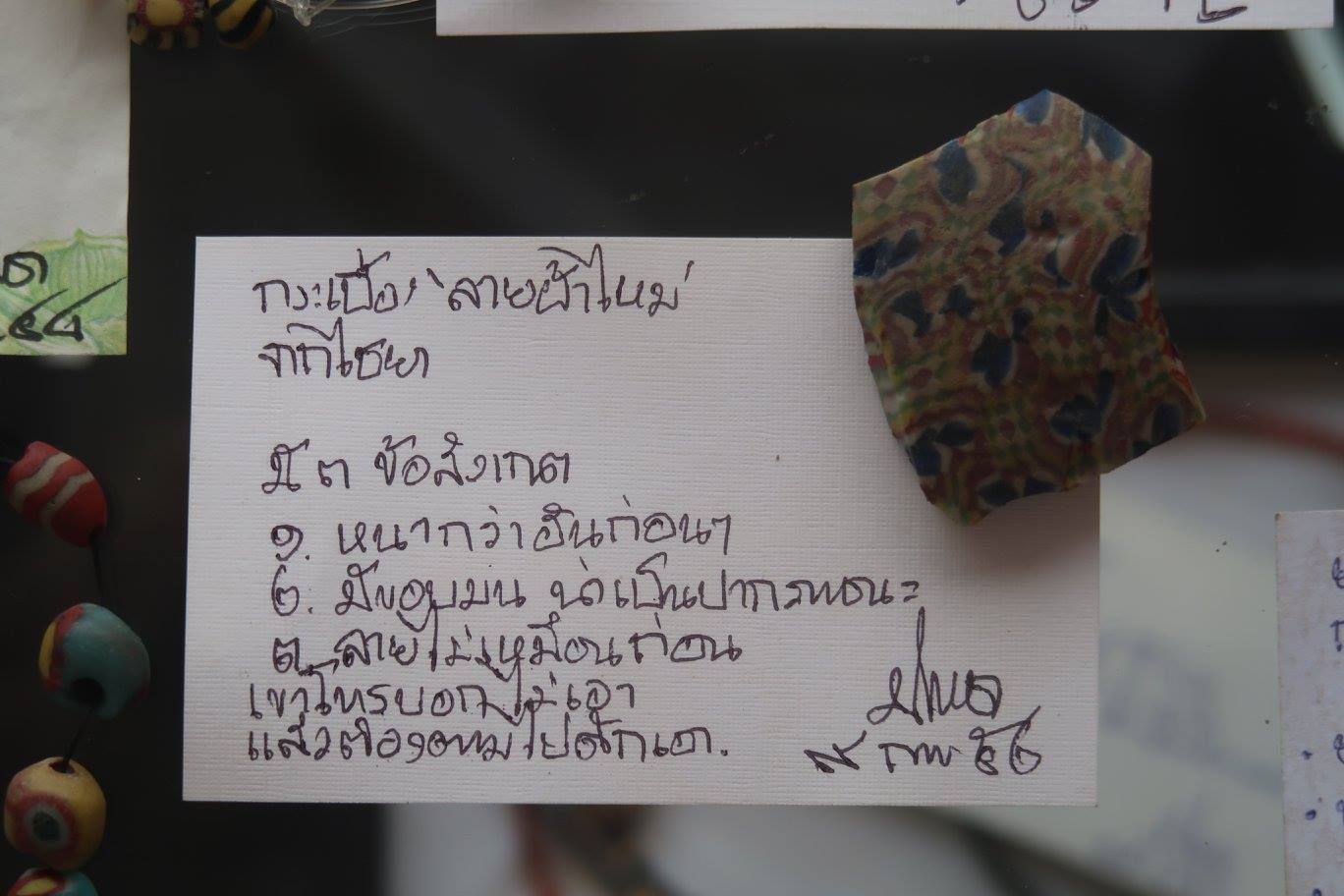 แต่ที่ผมบันทึกไว่สนุกไม่น้อย คือชิ้นแรกที่แรกเจอนั้นยังไม่แตก ตั้งวงคุยประเมินราคากันไว้หลายสตางค์ ส่งกันไปส่งกันมา ตกแตกกลางวง ตอนที่ยังไม่ทันตกลงค่า ค่าก็เลยตกแหลกไปด้วยครับ