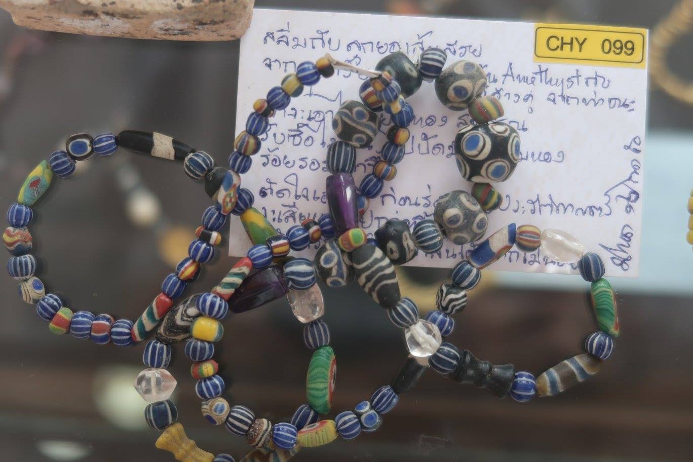 จุดเด่นพิเศษสำคัญคือการพบลูกปัดแก้วหลากสีเป็นจำนวนมากจนนำมาซึ่งหลายข้อสมมุติฐานว่าบ่งบอกอะไรบ้าง เพราะแก้วลายหลากสีนี้ทำด้วยเทคนิคพิเศษชั้นสูงคือ Mosaic glass ซึ่งพบแพร่หลายทั้งในอียิปต์โบราณ ย่านไวกิ้งสแกนดิเนเวีย กระทั่งย่ายเมดิเตอเรเนียน โดยเฉพาะแถบตะวันออกของเมดิเตอเรเนียน ส่วนใหญ่ในวงการตะวันตกจะเรียกว่า "ลูกปัดแก้วเมดิเตอเรเนียนตะวันออก" ไม่ได้เรียกว่า "โรมัน" อย่างที่บ้านเรานิยมเรียก โดยบางฝ่ายเลือกเรียก "แรกเริ่มอิสลาม" ก็มี