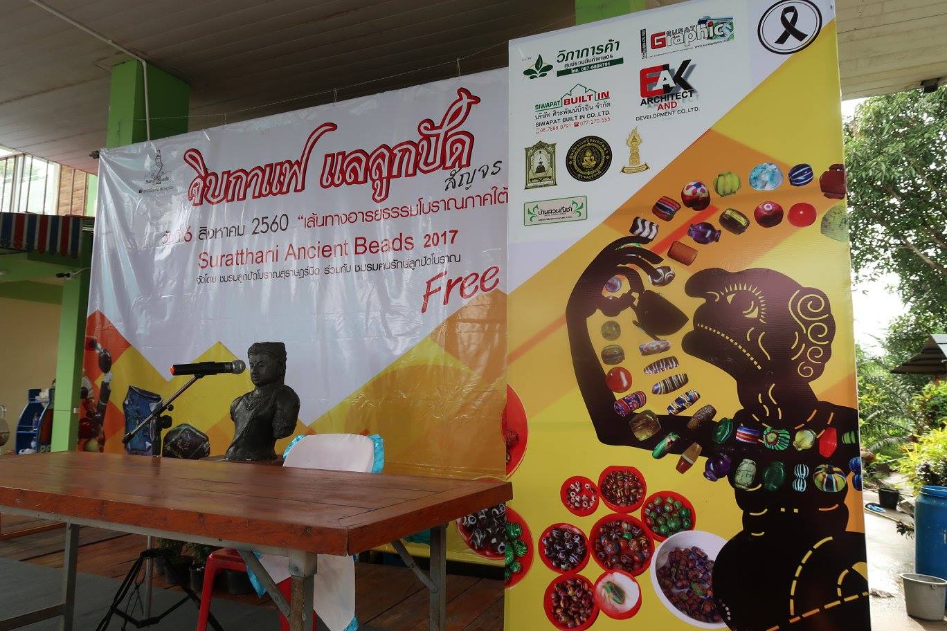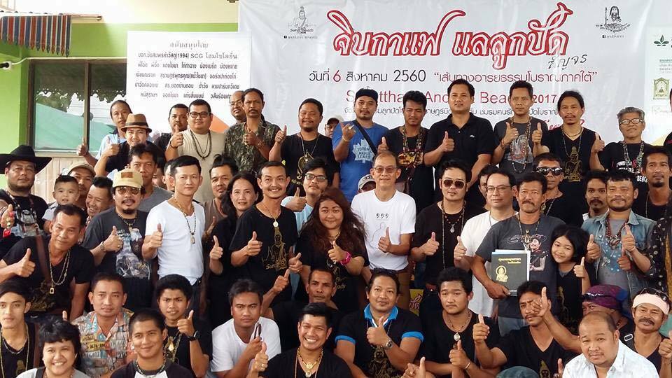 สี่ นอกจากเฮียเปิ้ล คุณอัมรินทร์ กับเจ๊จูน ที่เป็นเสมือนครูลูกปัดรุ่นแรก ๆ และที่พึ่งพิงของผมแล้ว งานนี้ ครูอ๋อยท่าชนะ ซึ่งเป็นคนแรกในการเข้าพื้นที่ท่าชนะของผมก็มาด้วย ครูบอกว่าพาเมียมาด้วย วันนั้นถูกเมียด่าหาว่าใครก็ไม่รู้จักแล้วพาเขาเข้าพื้นที่ได้อย่างไร ทิ้งงานการทางบ้านที่กำลังทำอยู่เลย อีกคู่ที่จำชื่อไม่ได้อยู่เรื่อย คือคู่ที่บนควนพุนพินที่พาผมเรียนรู้บนนั้นต่อจากเฮียเปิ้ล ในขณะที่พ่อเอก-ฝนลูกปัดนั้นก็เป็นอีกคนหนึ่งที่ช่างค้นคว้ามาแบ่งปันกันเสมอ ๆ เสียดายก็แต่พี่ระ-เฮียเล็ก กับสาว ๆ ที่ท่าชนะไม่ว่าง รวมทั้งขาดหลายขาที่พุมเรียง แล้วก็ที่หัวเขาด้วยครับ