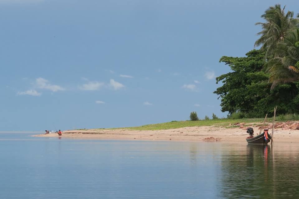 รอบนี้จึงขอเรือพี่เล็กกับพี่ระ พาล่องเรือออกไปตามคลองท่าม่วงจนถึงปากคลองที่มองเห็นทั้งแหลมโพธิ์ที่พุมเรียง และ แหลมท่ากระจายที่คั่นคันธุลีไว้ ก่อนที่จะวกกลับที่ประภาคารเพื่อหมายตากับ "ลุ่มวัด" ที่เป็นลุ่มของสันเขาประสงค์ ที่ชาวบ้านบอกว่าคือจุดหมายตามาแต่ไหน ๆ ในการเข้าสู่ปากน้ำท่าม่วง-ท่าชนะแห่งนี้ เสมือนประภาคารตามธรรมชาติมาแต่โบราณ โดยขอจอดเรือแวะที่สันดอนทรายตรงปากน้ำก่อนที่จะกลับเข้าชุมชนที่บริเวณที่ชาวบ้านเรียกว่า "ท่าเรือ" มาแต่ก่อนทั้ง ๆ ที่ไม่มีท่าอะไรเหลือ นอกจากเศษกระเบื้องถ้วยกับลูกปัดสารพัดที่ฝังค้างอยู่ในป่าทราย