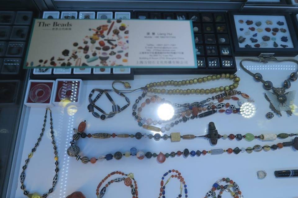 สำหรับของแสดงเท่าที่พอถ่ายรูปเอามาไหวนั้น มีของคนจีน ๒ - ๓ ราย ที่ต้องตาผม คือ คุณ Hui Laing จากเซี่ยงไฮ้ แล้วก็แผง Pumtek & Pyu ส่วน D Beads เห็นเป็นสิบ ๆ แผง ไม่รู้ว่าอย่างไรแน่ ขณะที่ของ China South Beads นั้นถามดู บอกว่าเป็นของจากพม่า ส่วนของ Afgan Brother ที่ถือเป็นมิตรกันมานานนั้น ชอบการจัดกล่องของเขามาก เขาบอกว่าสั่งทำพิเศษสำหรับส่งไปที่ญี่ปุ่น