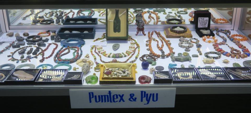 แล้ววันนี้ผมก็แวะไปดูการแสดงลูกปัดเอเชียไหว หลังจากบอกคณะผู้จัดไว้ว่าติดงานต่างประเทศ แต่พอดีกำหนดเขาเสร็จเร็วก็เลยรีบกลับมาถึงตอนตี ๓ ตี ๔ งีบหน่อยหนึ่งจึงง่วง ๆ ไปเวียนดูมานิดหน่อยตอนบ่ายแล้ว ไม่ค่อยได้ทักทายอะไรกับใครเท่าไหร่ นอกจากมุมเบอแรงสองเจ้านี้ หนึ่งนั้นเก๋ด้วยการเอาลวดทองเหลืองมาพันเม็ดโกลนให้กลายเป็นจี้ อีกหนึ่งนั้นเป็นเม็ดที่ ดร.เอียน เคยถ่ายรายงานไว้ว่าพบที่ทุงเกดเชด นครปฐม ไม่รู้ว่าอยู่ตรงไหนแน่ แต่ของยังวนเวียนอยู่ในวงการนี้นี่เอง ๓๐ กว่าปีมาแล้ว