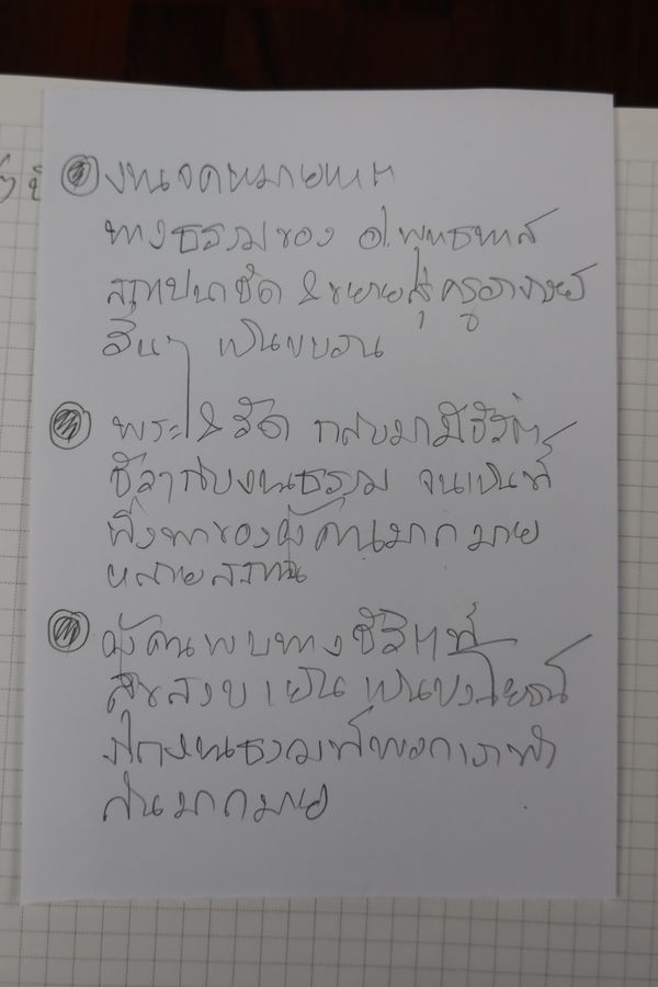 โดยทิ้งท้าย ขอแต่ละคนช่วยเขียนใส่กระดาษคนละ ๓ ข้อ