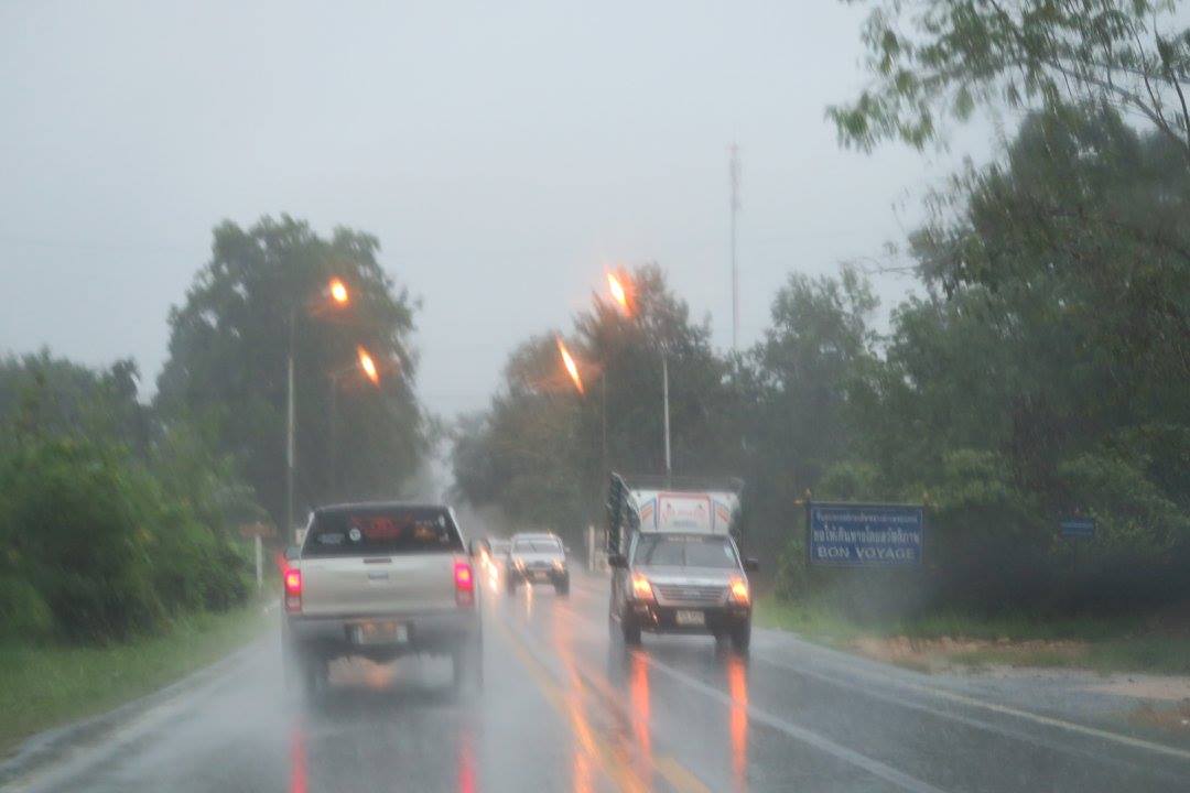 ท่ามกลางสายฝน ที่ริมถนนแถวช่วงพรหมโลก-ท่ายายหนี เมื่อเช้าวันที่ ๒ ธค.