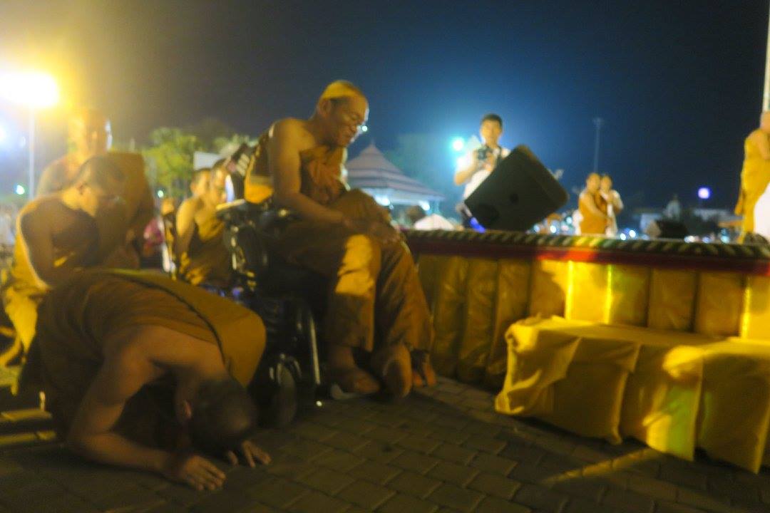 โดยผมเชิญท่านนายอำเภอธาตุพนมที่พลีทุกอย่างเพื่องานนี้มากราบแทบเท้า ณ ขณะที่พระอาจารย์สมภพกระทำนมัสการสักการะองค์พระธาตุพนม จากนั้นคณะศิษย์จึงช่วยกันยกรถของพระอาจารย์ลอยเหนือหัวของพวกเราทุกคนขึ้นบนเวที เบื้องหน้าองค์พระธาตุพนม ท่ามกลางเสียงซ้องสาธุการทั่วทั้งมณฑลหน้าพระธาตุ.