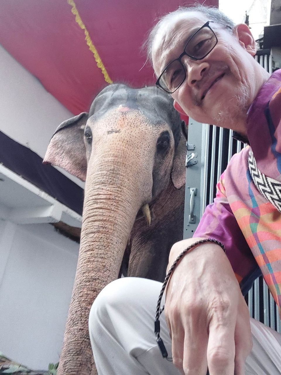 ข้างในเมื่อตอนบ่ายกำลังคึกคัก มีเลี้ยงช้างไว้เตรียมแห่ตอนค่ำ