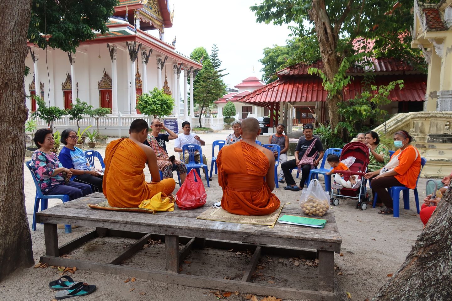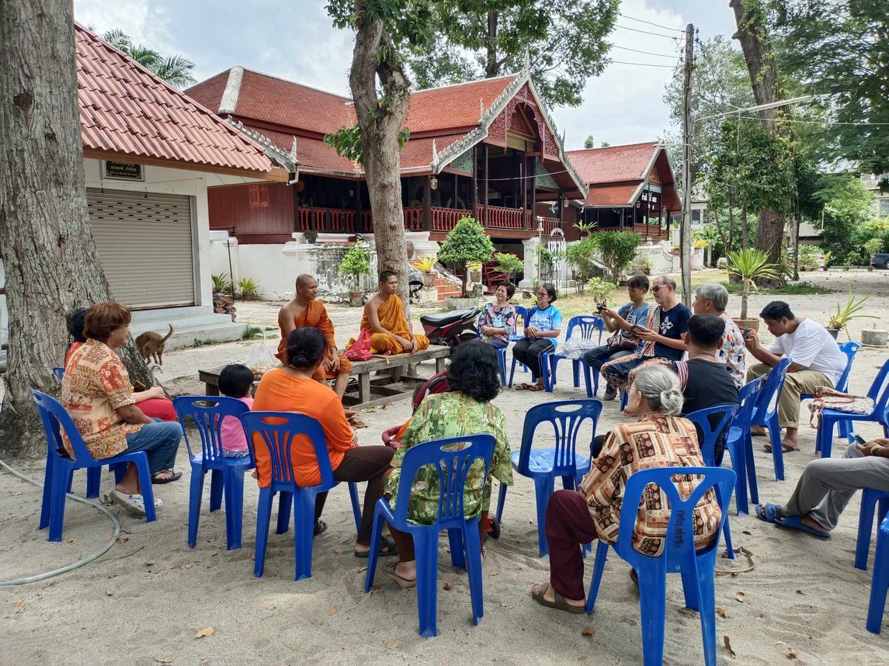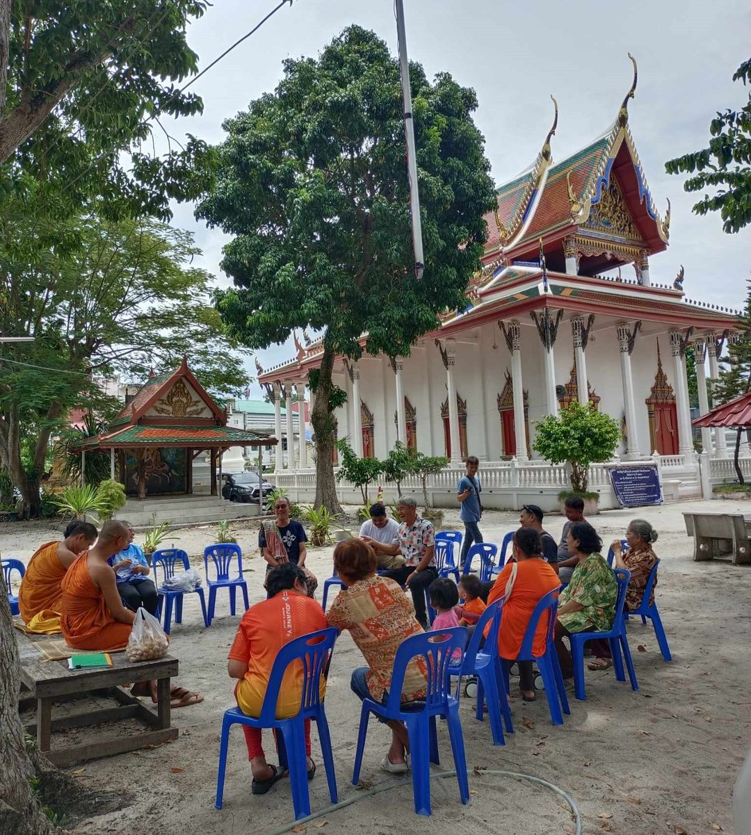 นี้ที่ประชุมกันจนฝนตกต้องขยับจากกลางลานทรายมาชายคาโรงธรรม