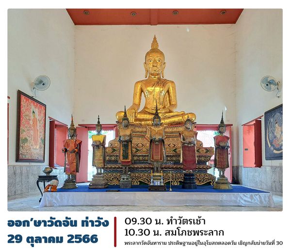 เชิญชวนพุทธบริษัทสักการะพระลากวัดจันทาราม พระลากโกลนไม้ขนุนทองหุ้มแผ่นเงิน สกุลช่างท่าวัง เชิญจากหอพระลากลงประดิษฐานภายในอุโบสถตลอดวันที่ 29 ตุลาคม ก่อนเชิญกลับขึ้นหอพระลากบ่ายวันที่ 30 ตุลาคม