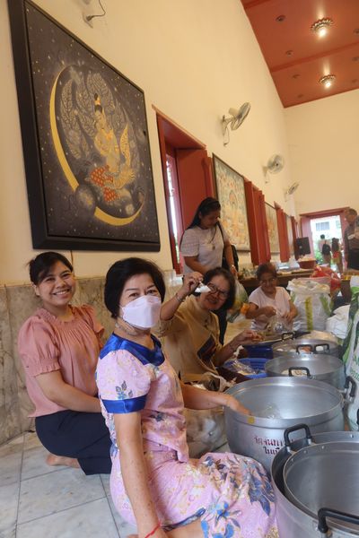 หลังใส่บาตรหน้าล้อเสร็จวันนี้ ตอนที่สาว ๆ ช่วยกันจัดการของใส่บาตร