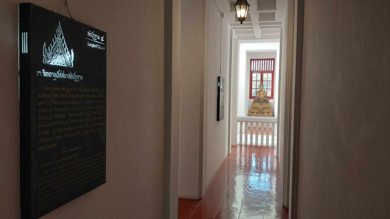 มีพื้นที่ให้นั่งอ่านหรือภาวนา พร้อมกับนานาข้อธรรมให้ข้อคิดติดตามผนัง