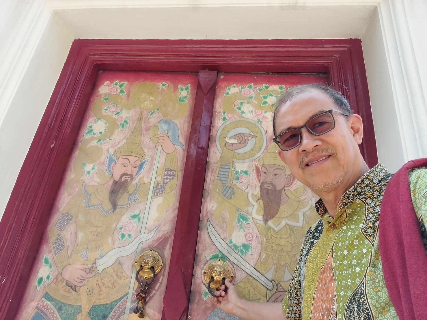 ... ภาพบนบานประตูที่นี้แปลกมาก เหมือนวาดบนผ้าใบแล้วเอามาแปะบนกระดานไหม ?