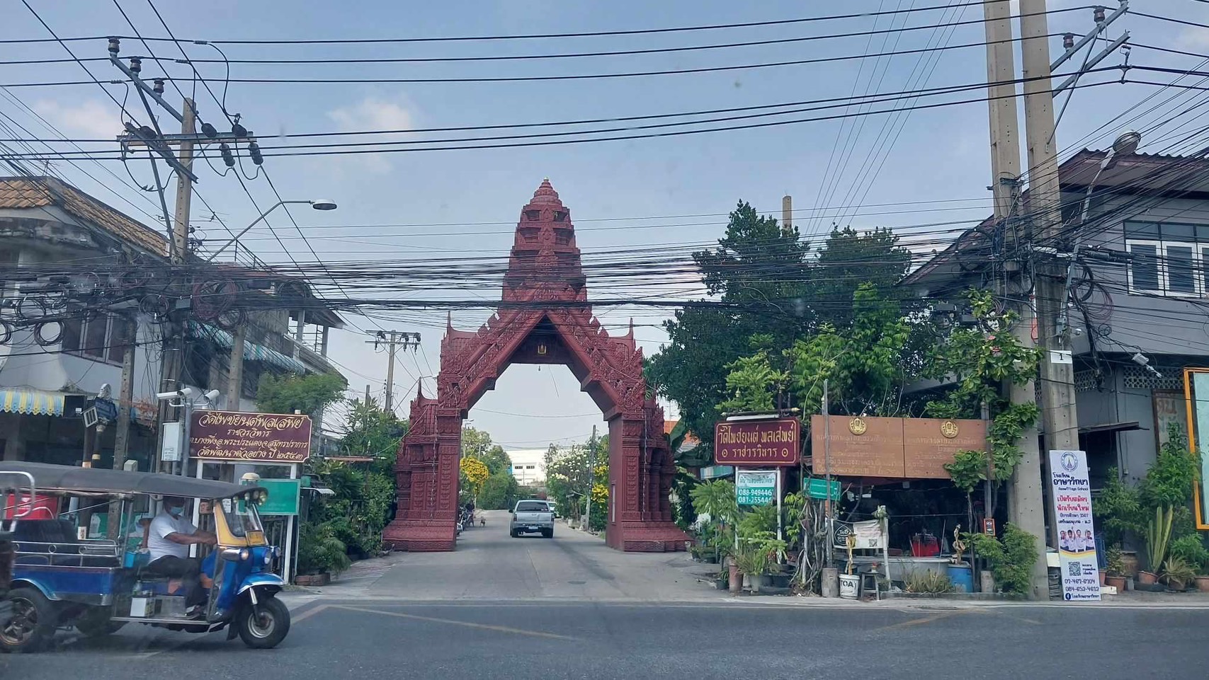 พอเห็นซุ้มประตูวัดนี้อย่างประสาททางอีสานใต้ ผมก็เกิดข้องใจอยากเข้าไปส่อง