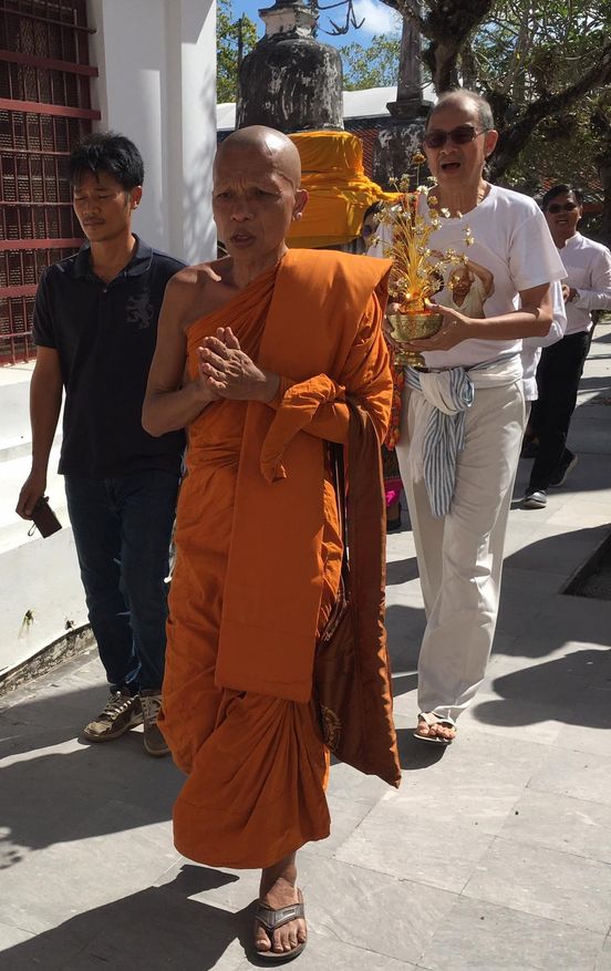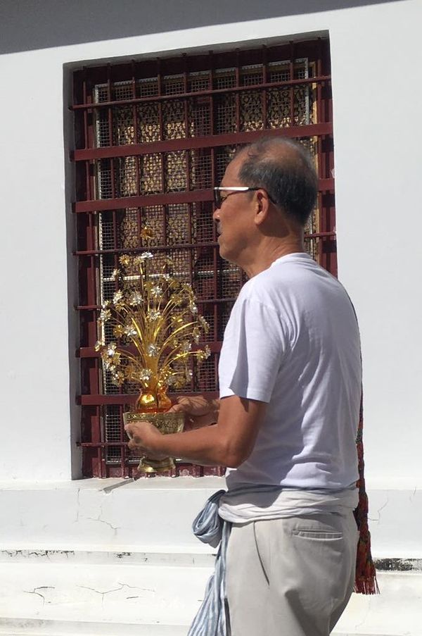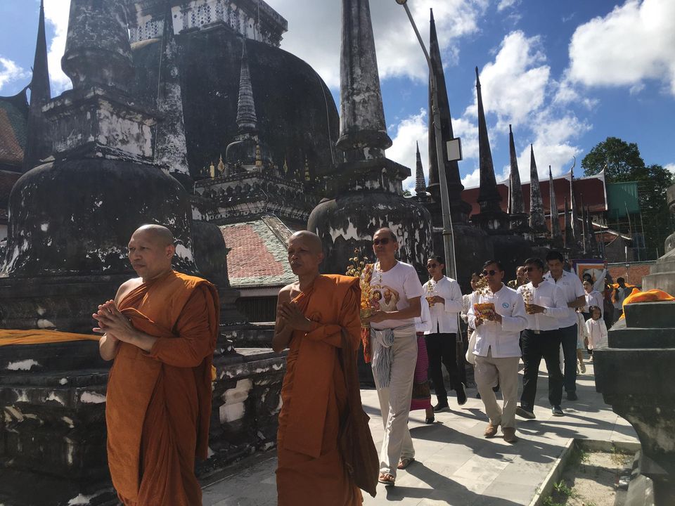 โดยกำหนดให้ผมถือพุ่มดอกไม้เงินทองที่ทุกคนร่วมกันสร้างเพื่อถวายในวันนี้