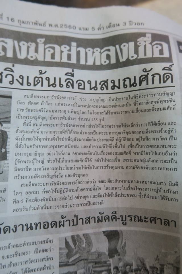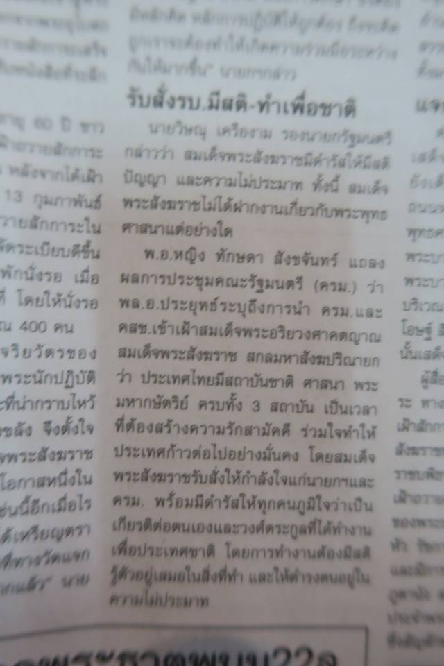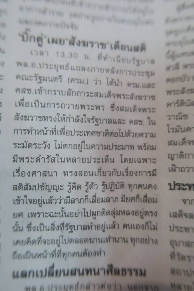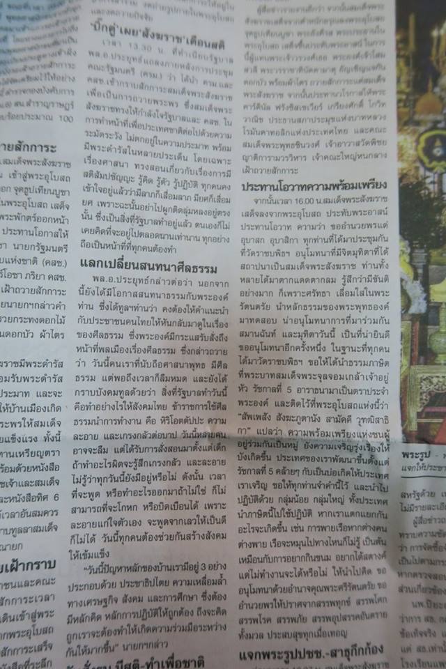 แม่ครับ วันนี้ที่สนามบินนครที่พี่โต-ตา พี่จุ๋มกับติ่งลงไปทำงานกับน้าพามานั้น เจอข่าว นสพ.มติชนที่น่าอ่านมากนี้ โดยเฉพาะที่สมเด็จพระสังฆราชฯ อัมพร ท่านให้พรกับประชาชนและคณะรัฐมนตรีที่วัดราชบพิธจนอดนึกถึงวันที่ไปกราบท่านกับแม่และน้าพา - พี่ ๆ ไม่ได้